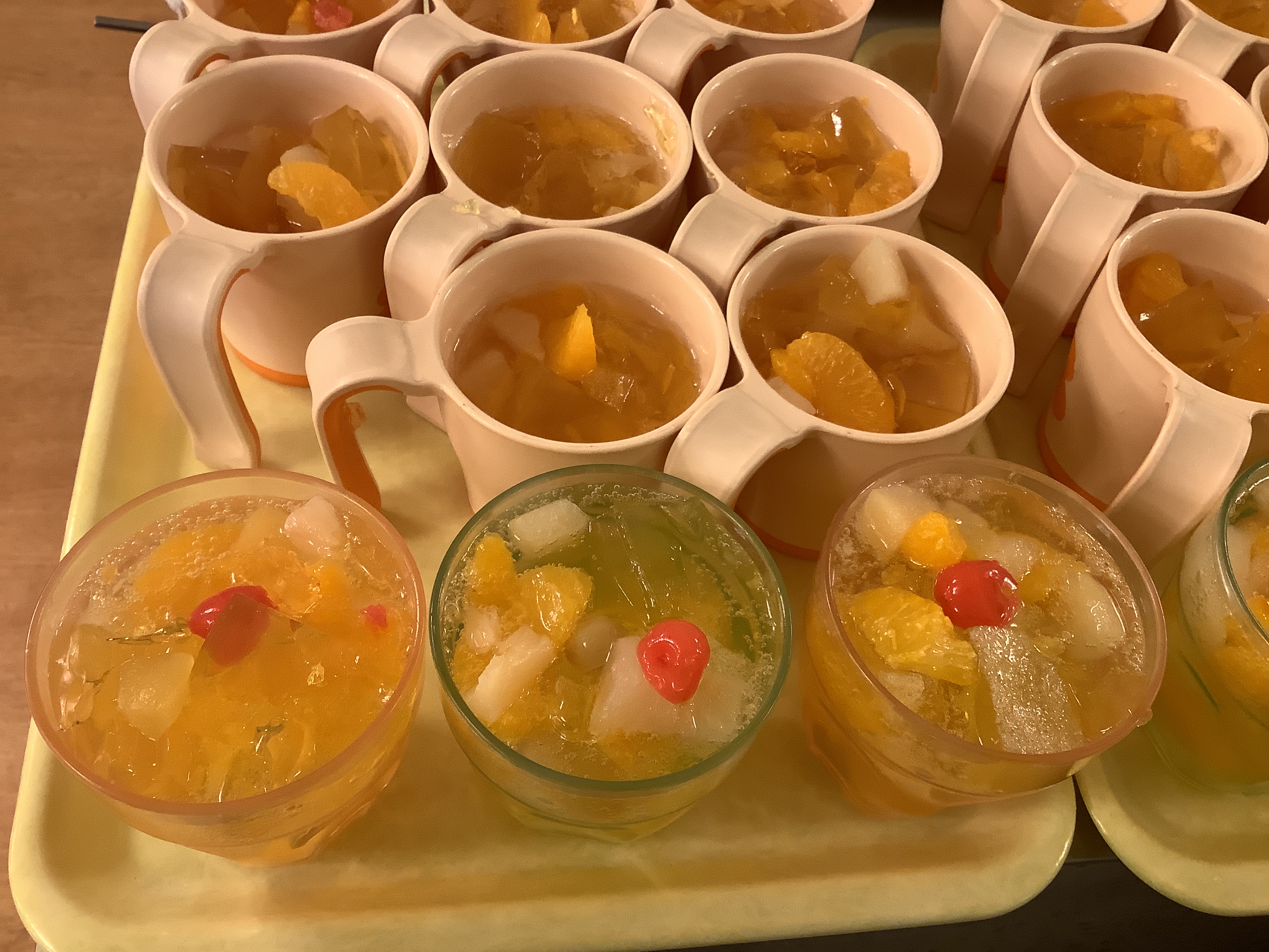 手作りフルーツポンチレクを行いました(*´▽`*) おやつレクは利用者様にも大変好評で今後も沢山行っていきたいです♪