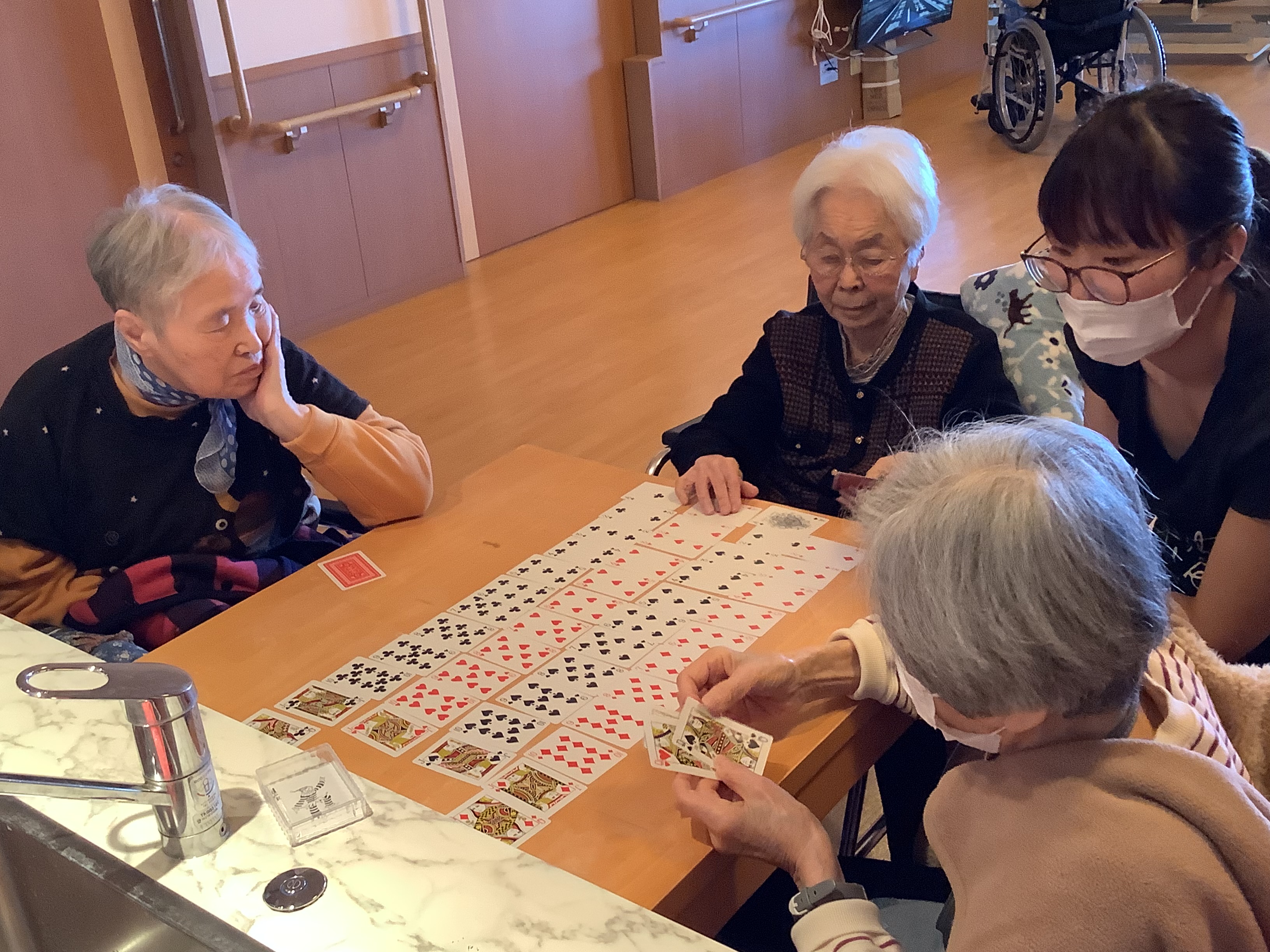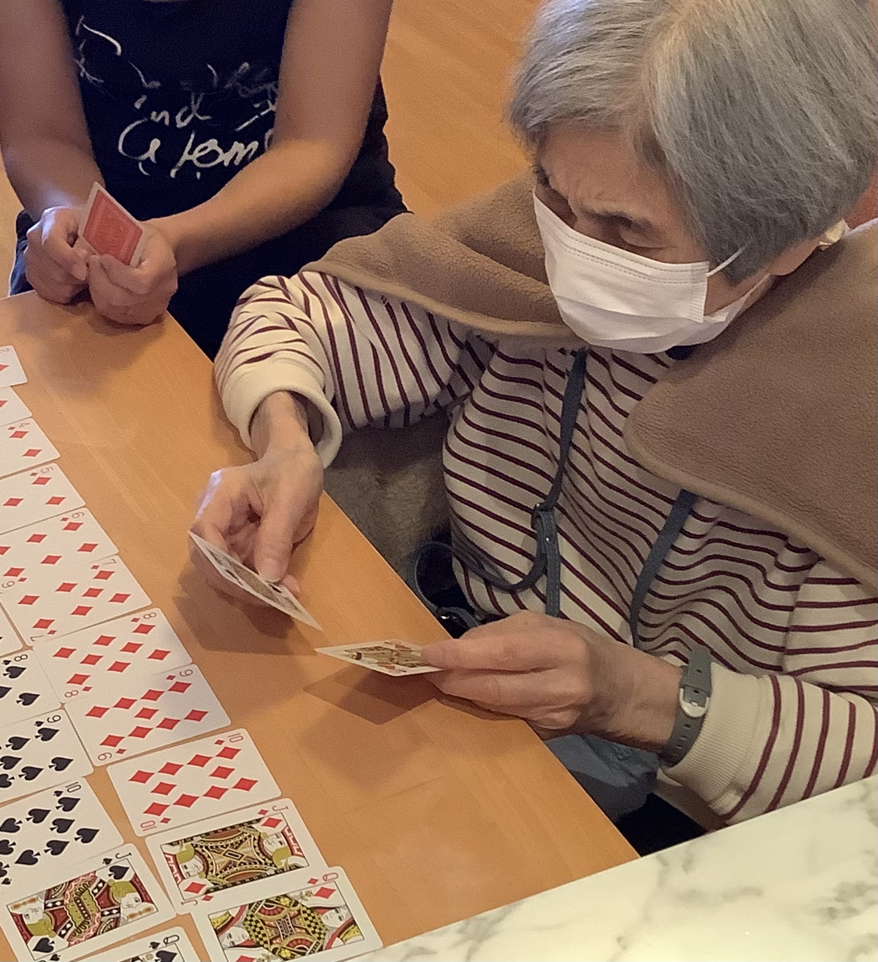 午後の時間を使って、職員とご利用者様でトランプ大会♡