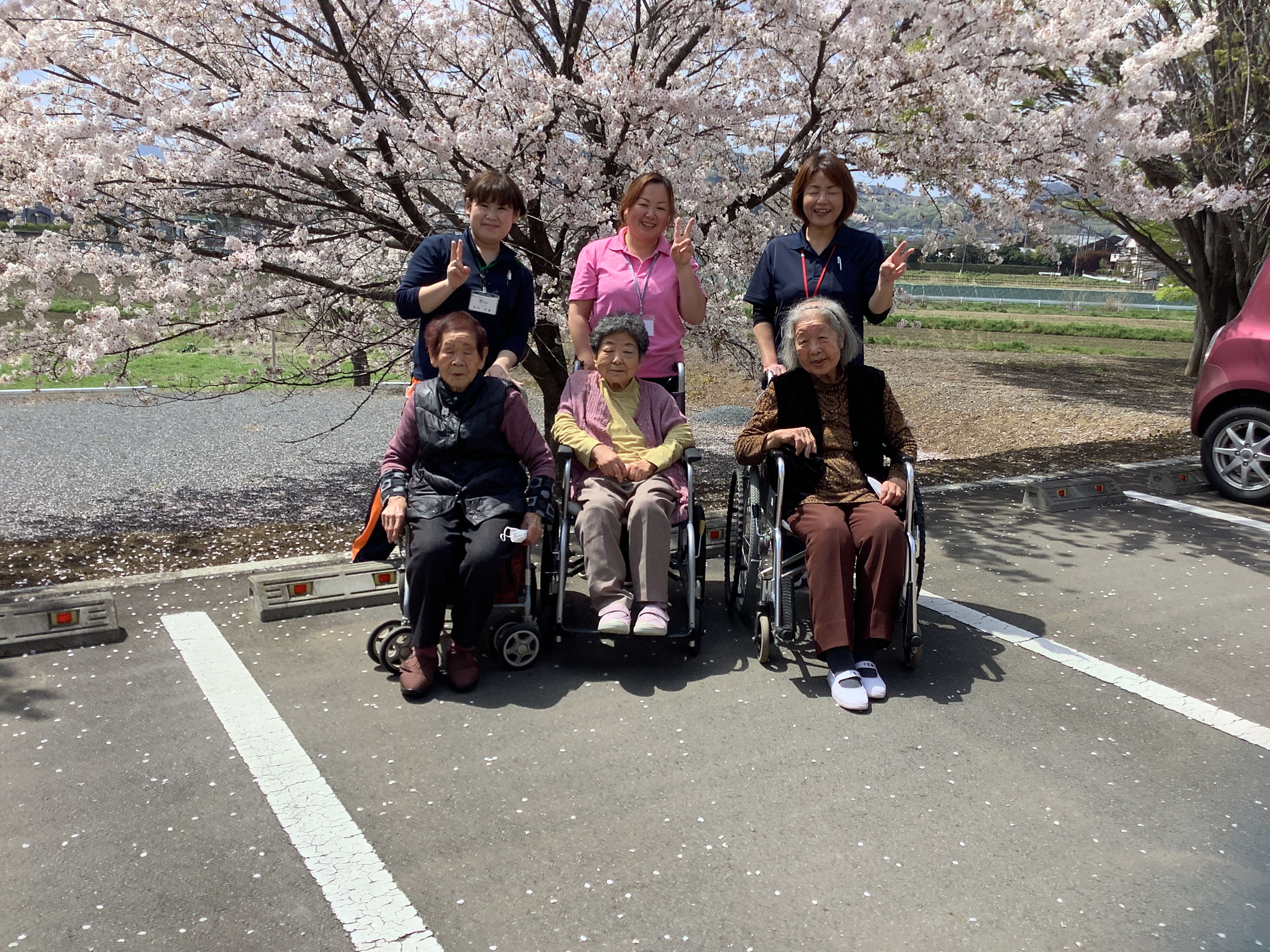 先週、満開の桜を施設駐車場にお散歩しながら見に行きました(*´▽`*)素敵な写真も撮れて、全利用者様にプレゼントする事が出来ました(^^♪