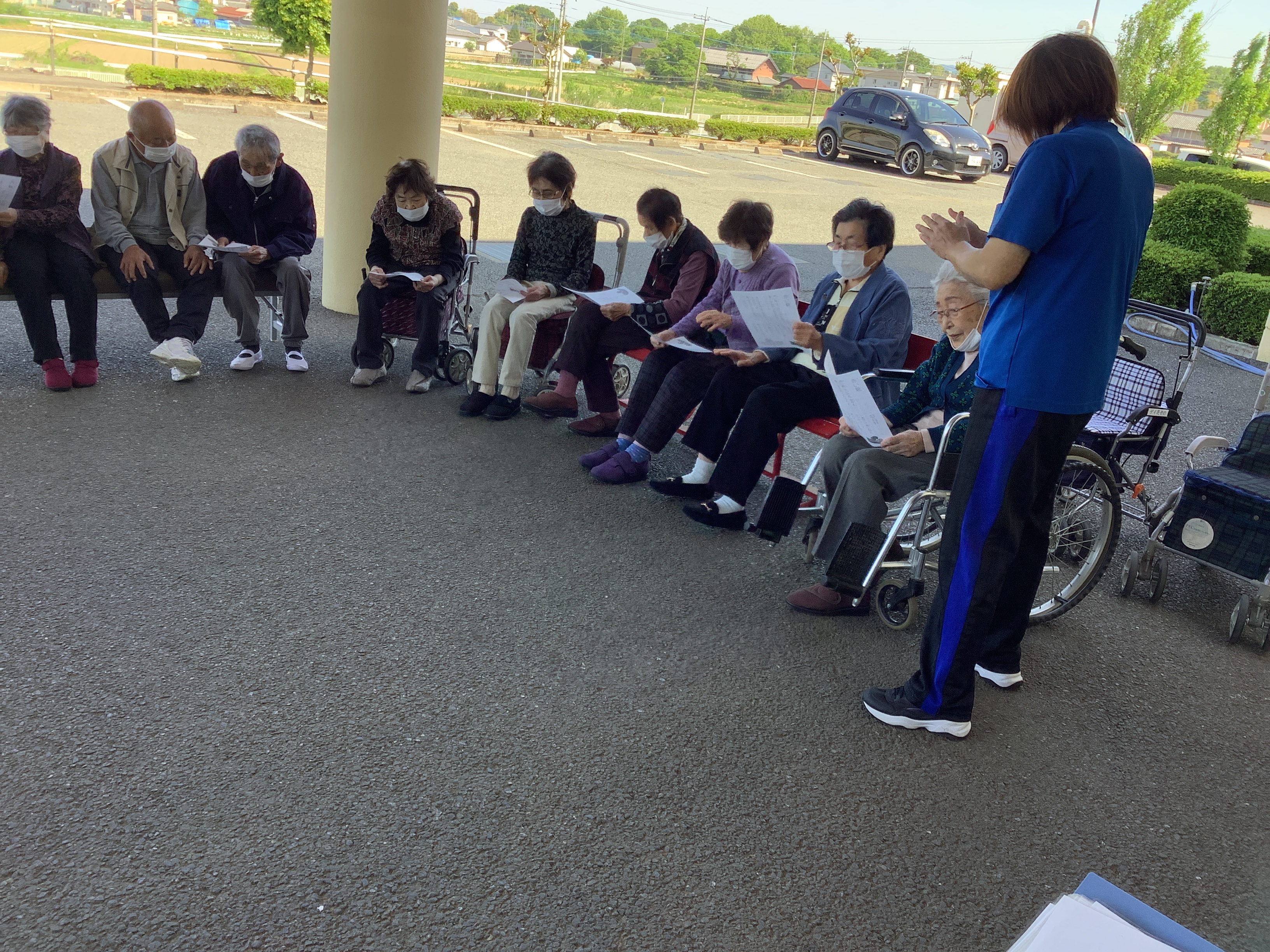 天気の良い日には外に出て運動や歌など楽しんで頂いています(*^^*)