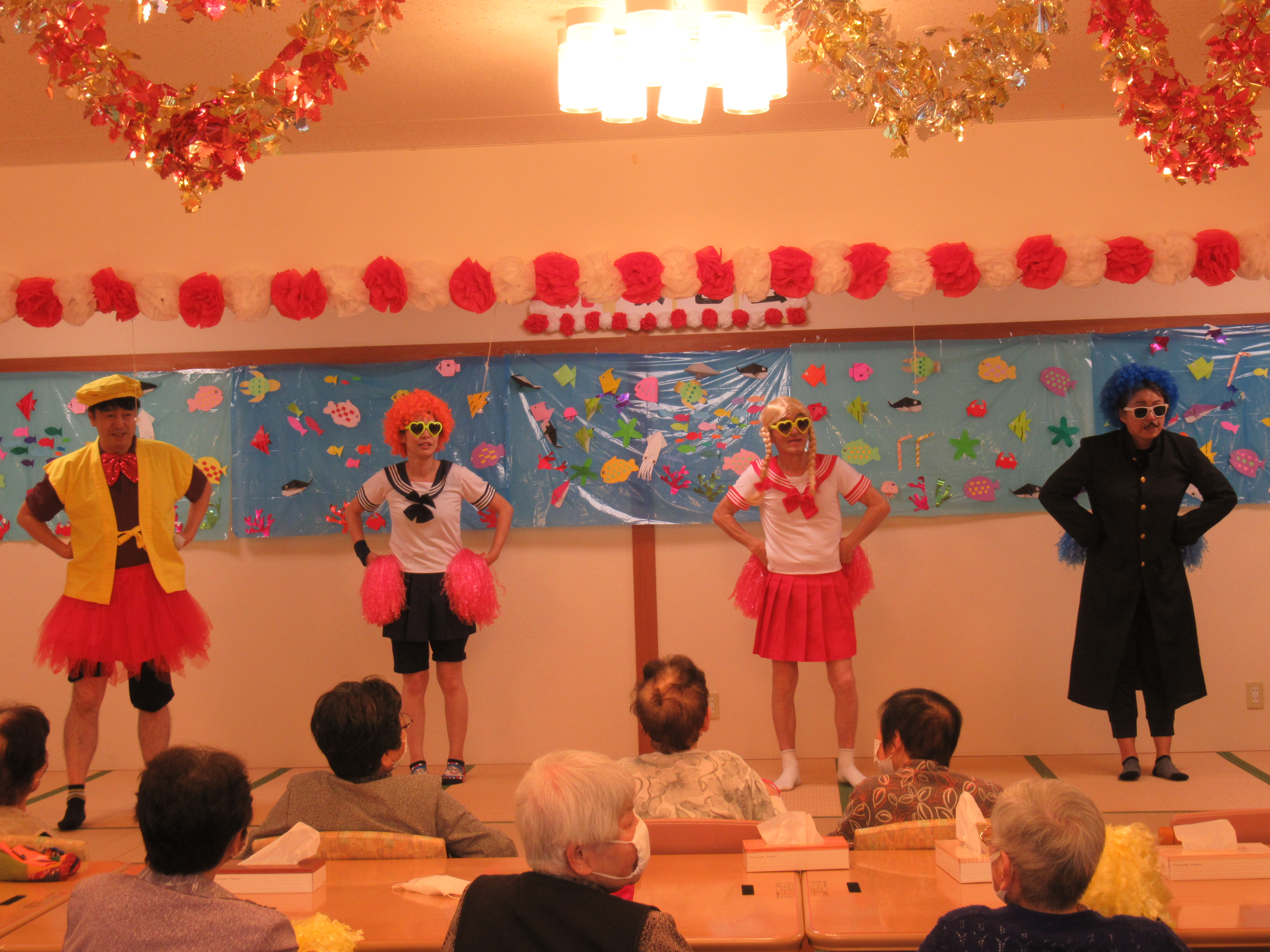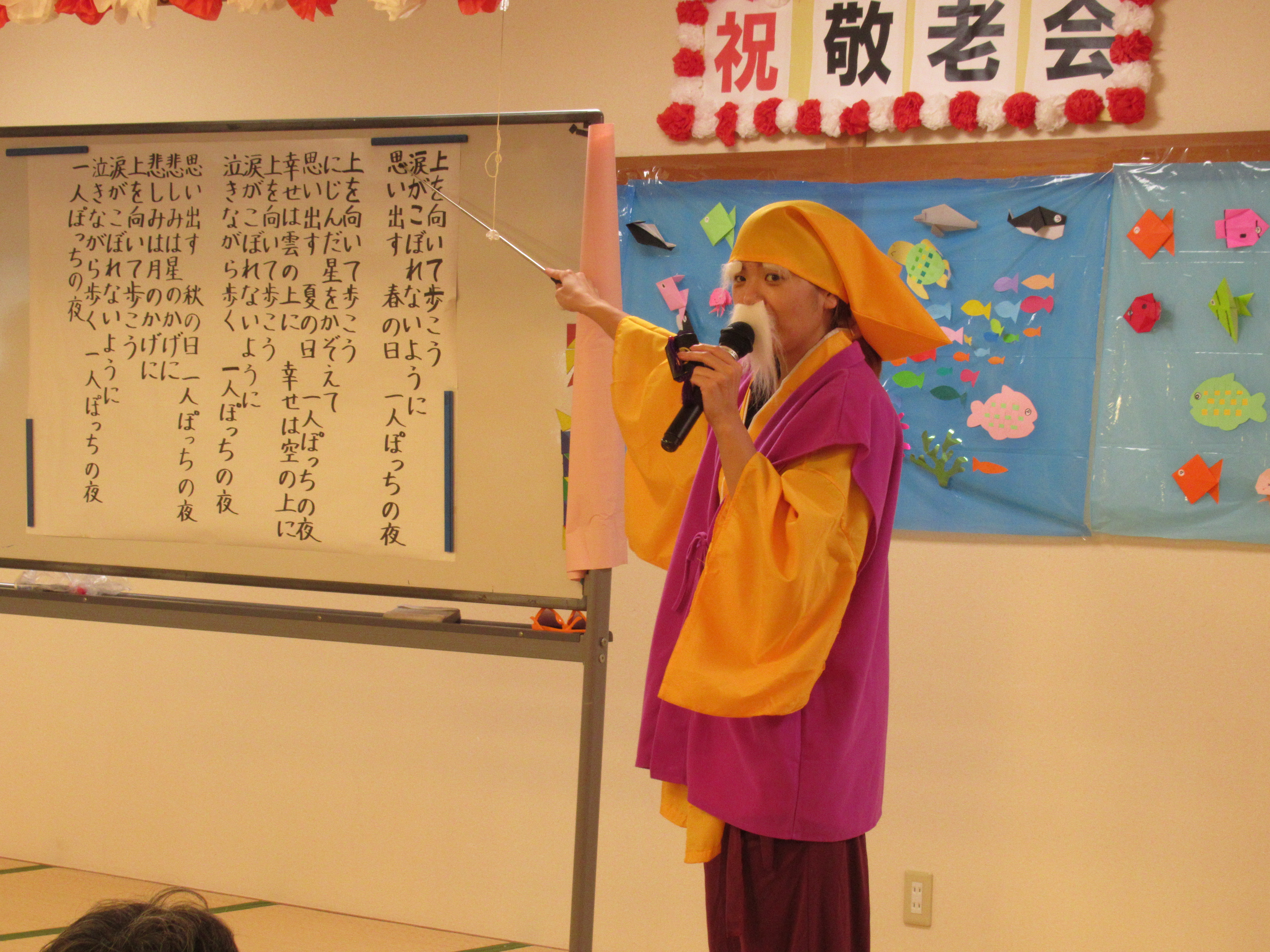 先週の敬老会週間の出し物の続きをアップします(^^♪ 利用者様たちから「先週は楽しかったよ」「また見せてね」とありがたいお言葉を沢山頂いております☆