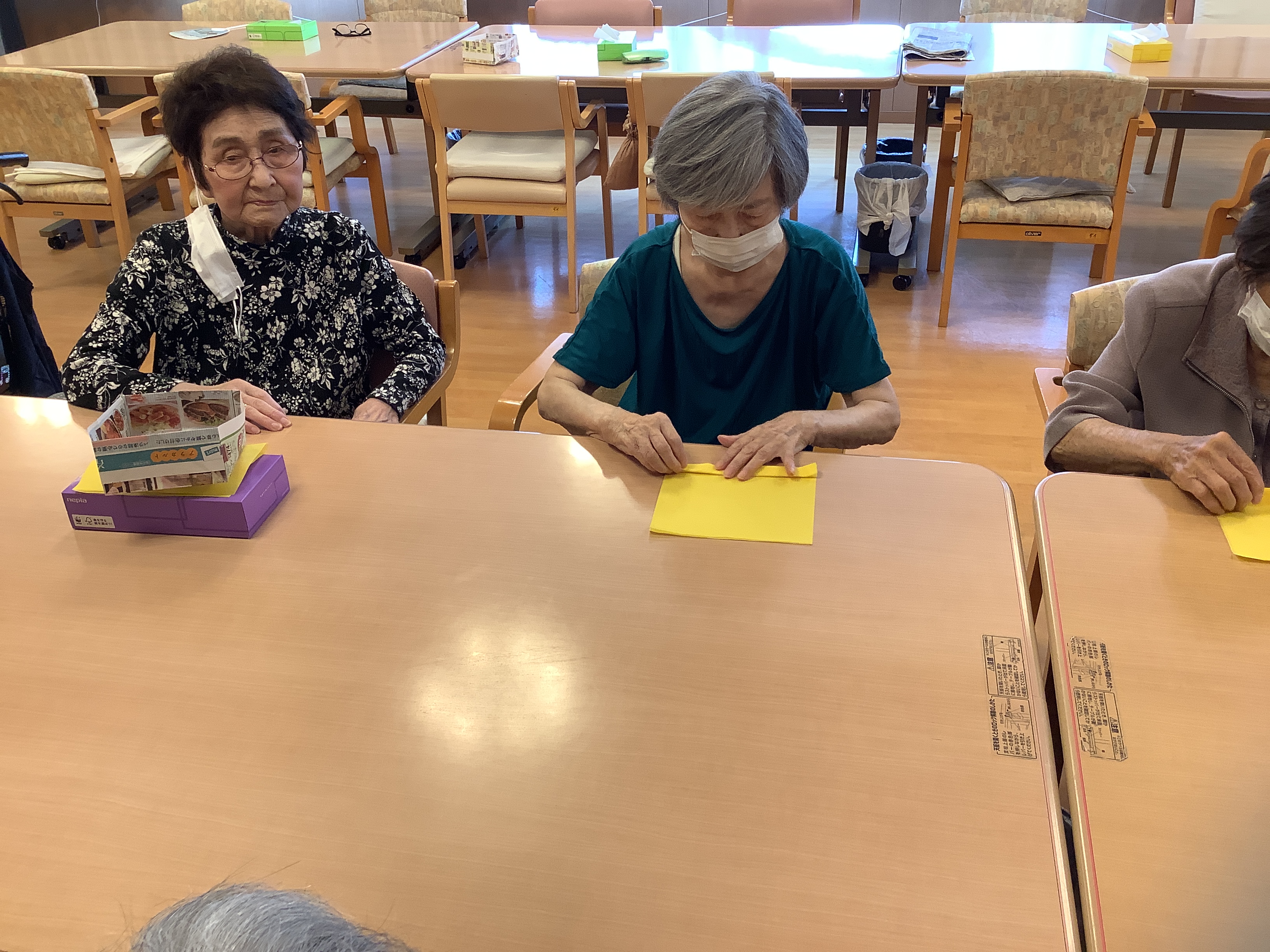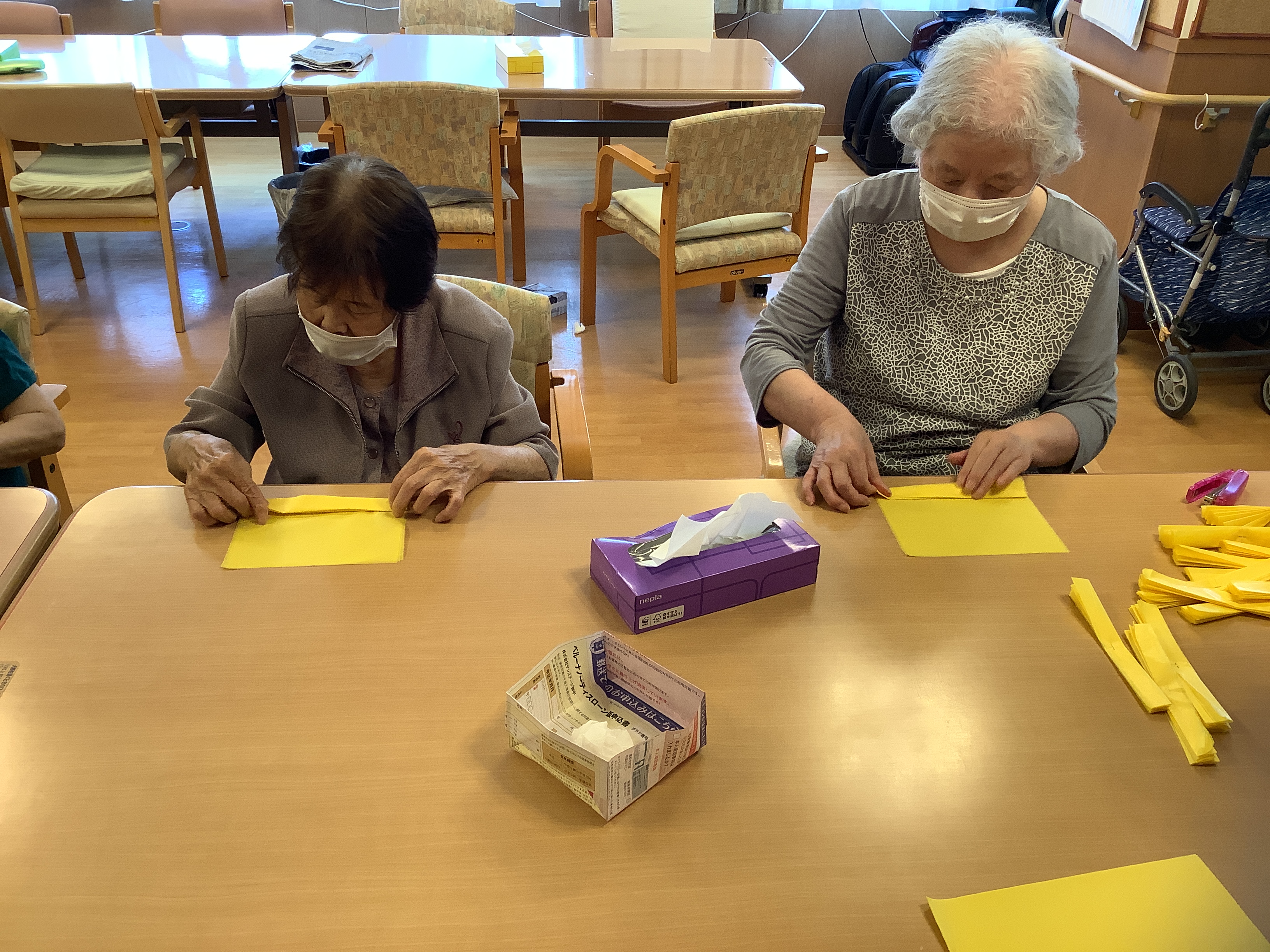 デイサービス入り口壁面のヒマワリは利用者様達がお花紙で折ったもので作られています(^^♪完成した大作をみて皆様大喜びされていました(*´▽`*)