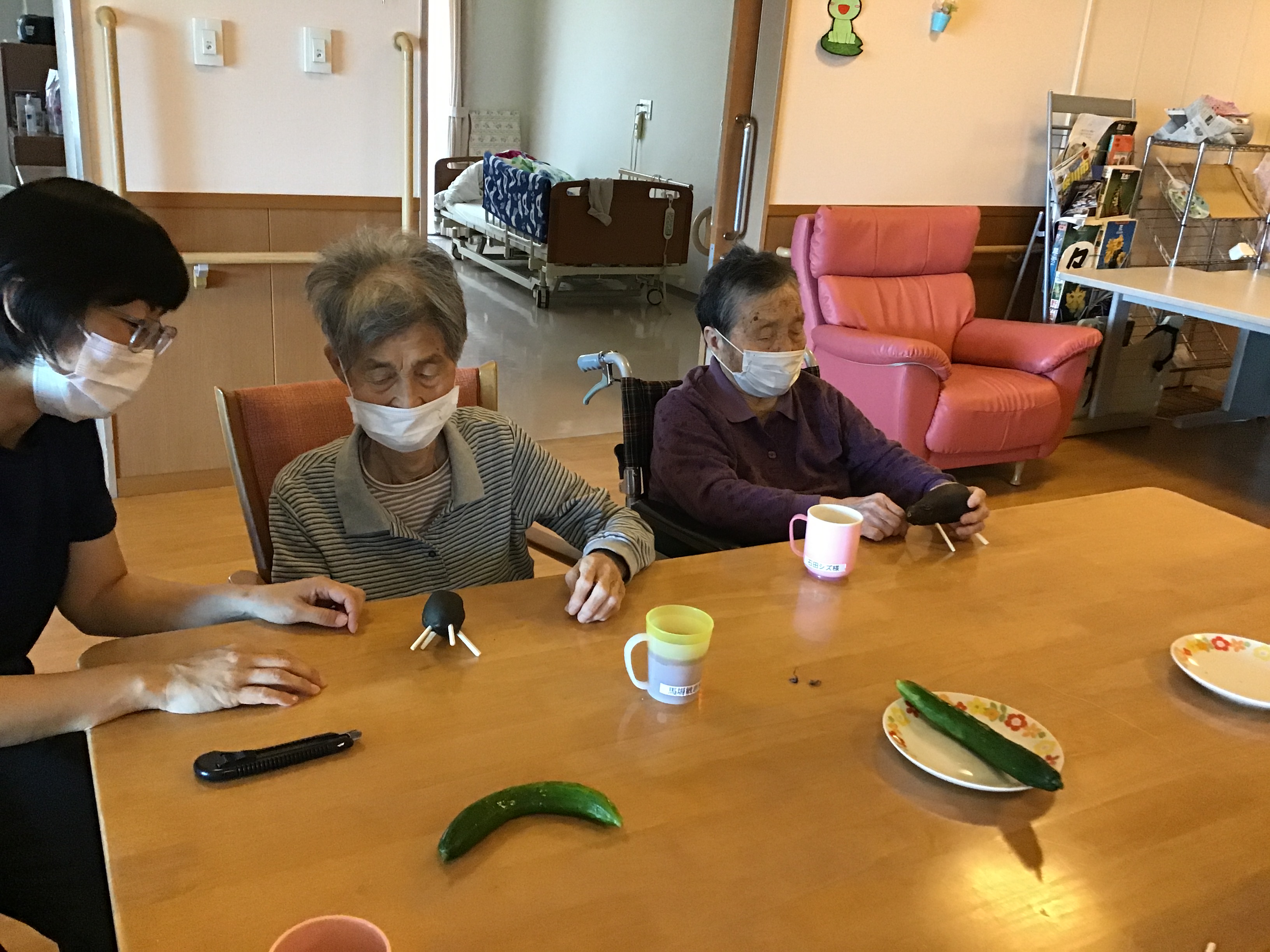 八月になったので少し早いですが茄子とキュウリで精霊馬・精霊牛を作りました♡
