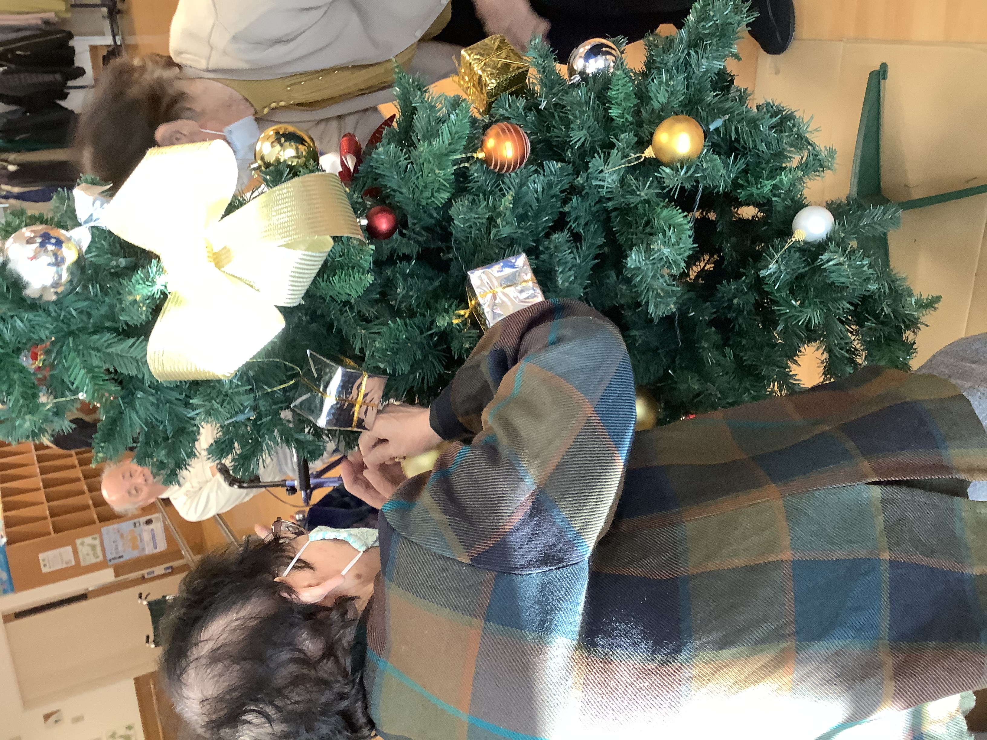 デイサービスでは、先日クリスマスツリーの飾りつけを行いました( *´艸`)皆様、とっても楽しみながら飾りつけをして頂き、綺麗なツリーが完成しました(^^♪