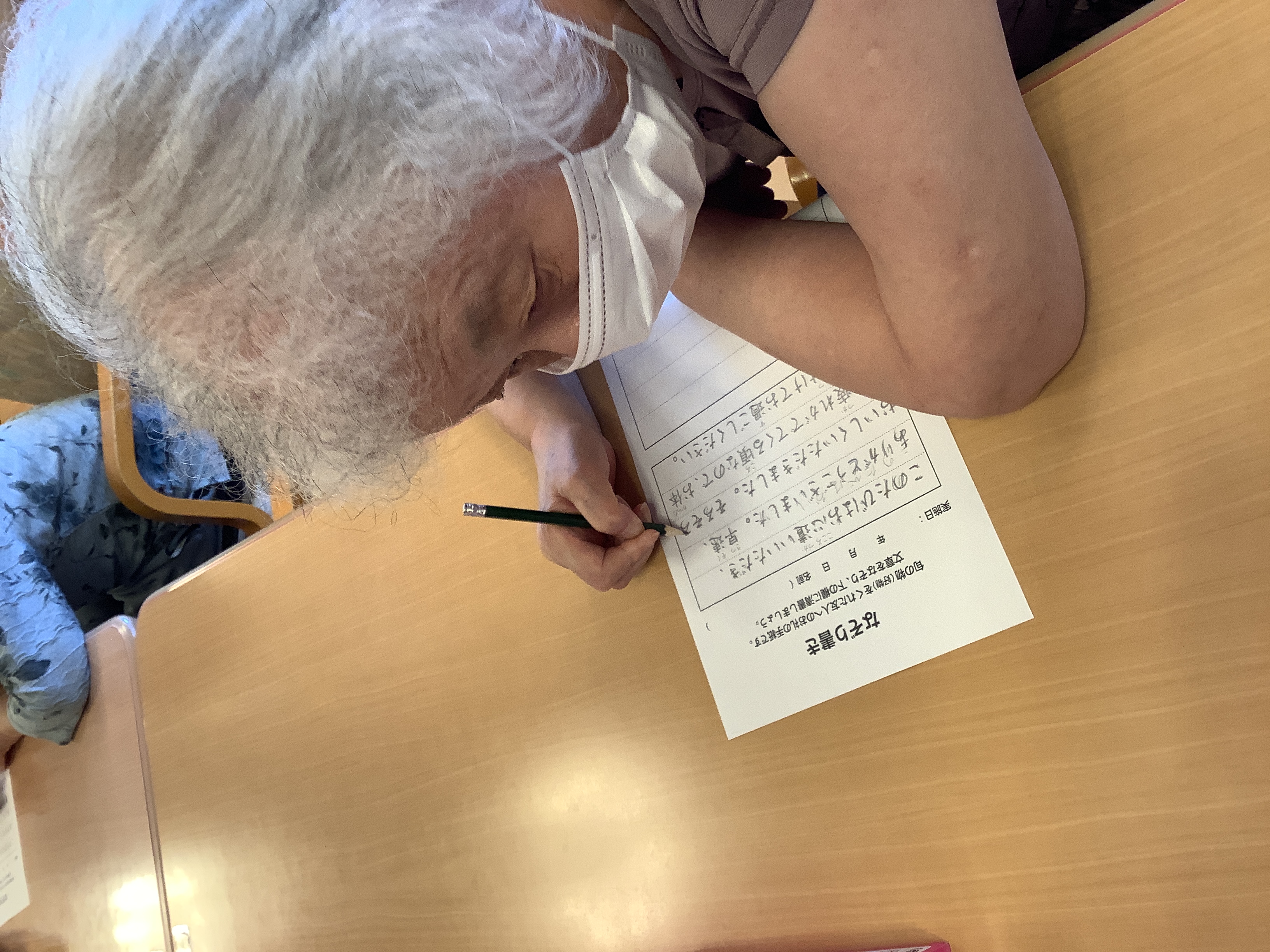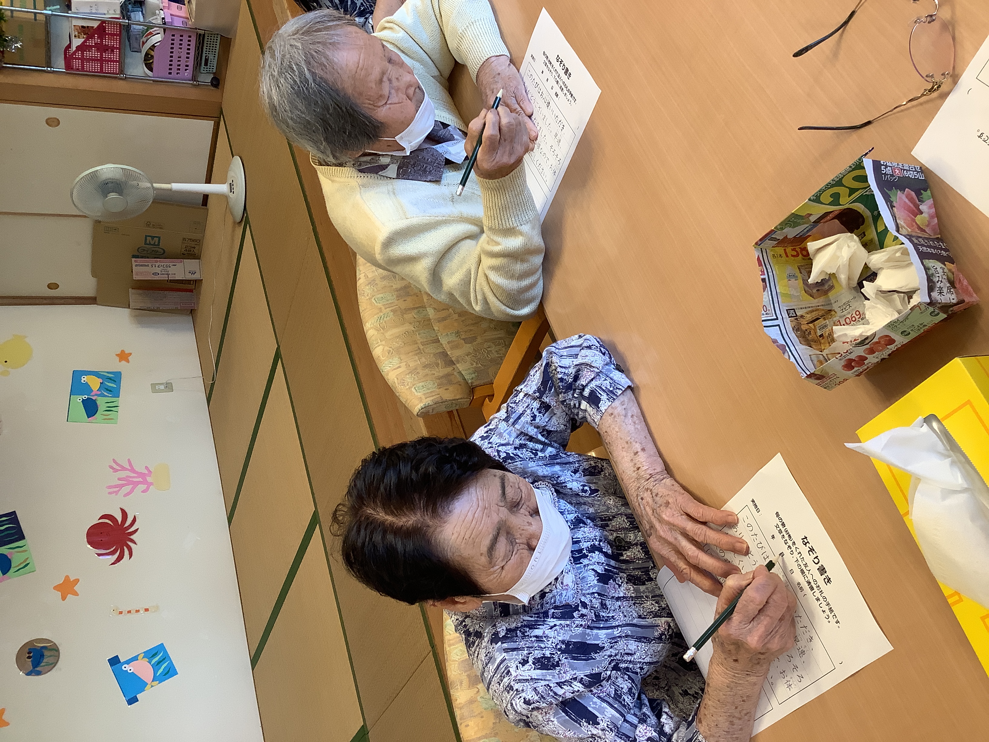 皆様、真剣に取り組まれています!(^^)! 指先を動かす事で脳の活性化♪ この後、皆でそろって文章を読み上げました(*^^*)