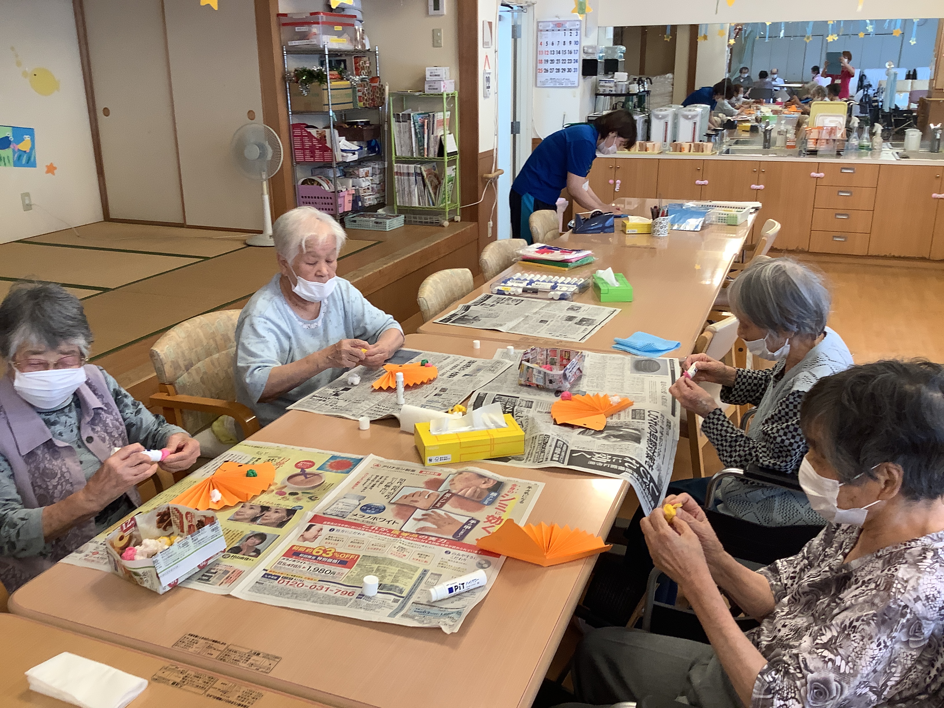画用紙とお花紙で可愛いはりねずみの作品を作りました(^^♪