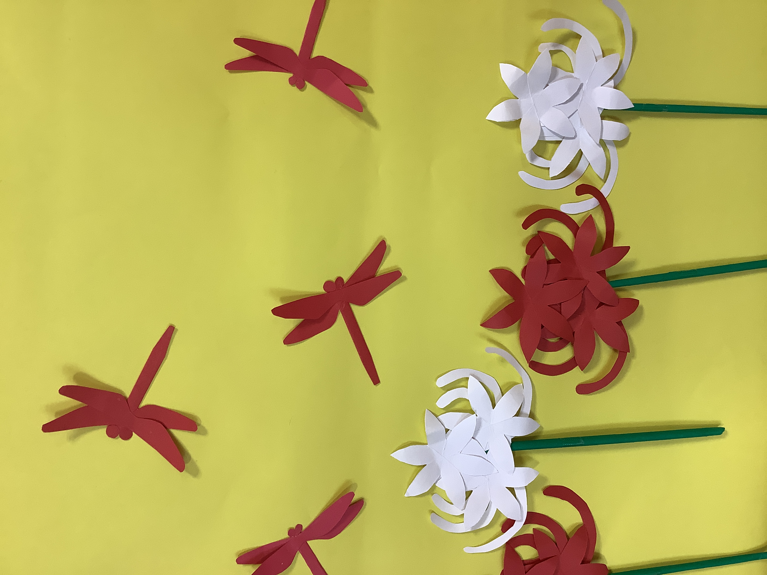 デイサービス入り口の秋壁面が完成しました(*´▽`*) サンマを盗んだ犯人は猫ちゃんですね( *´艸`)
