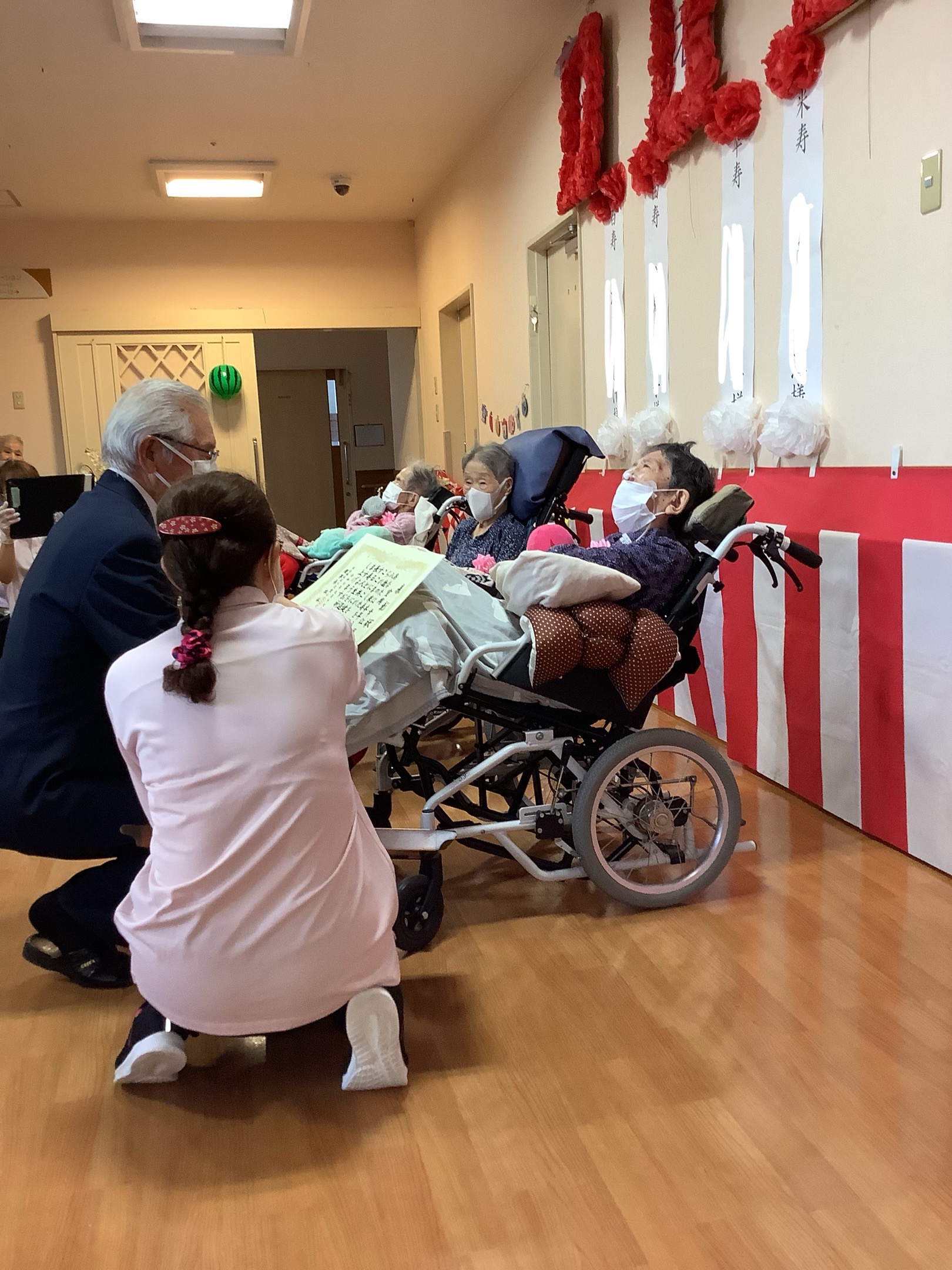 3名の方が米寿・卒寿・百寿のお祝いでした(^-^)