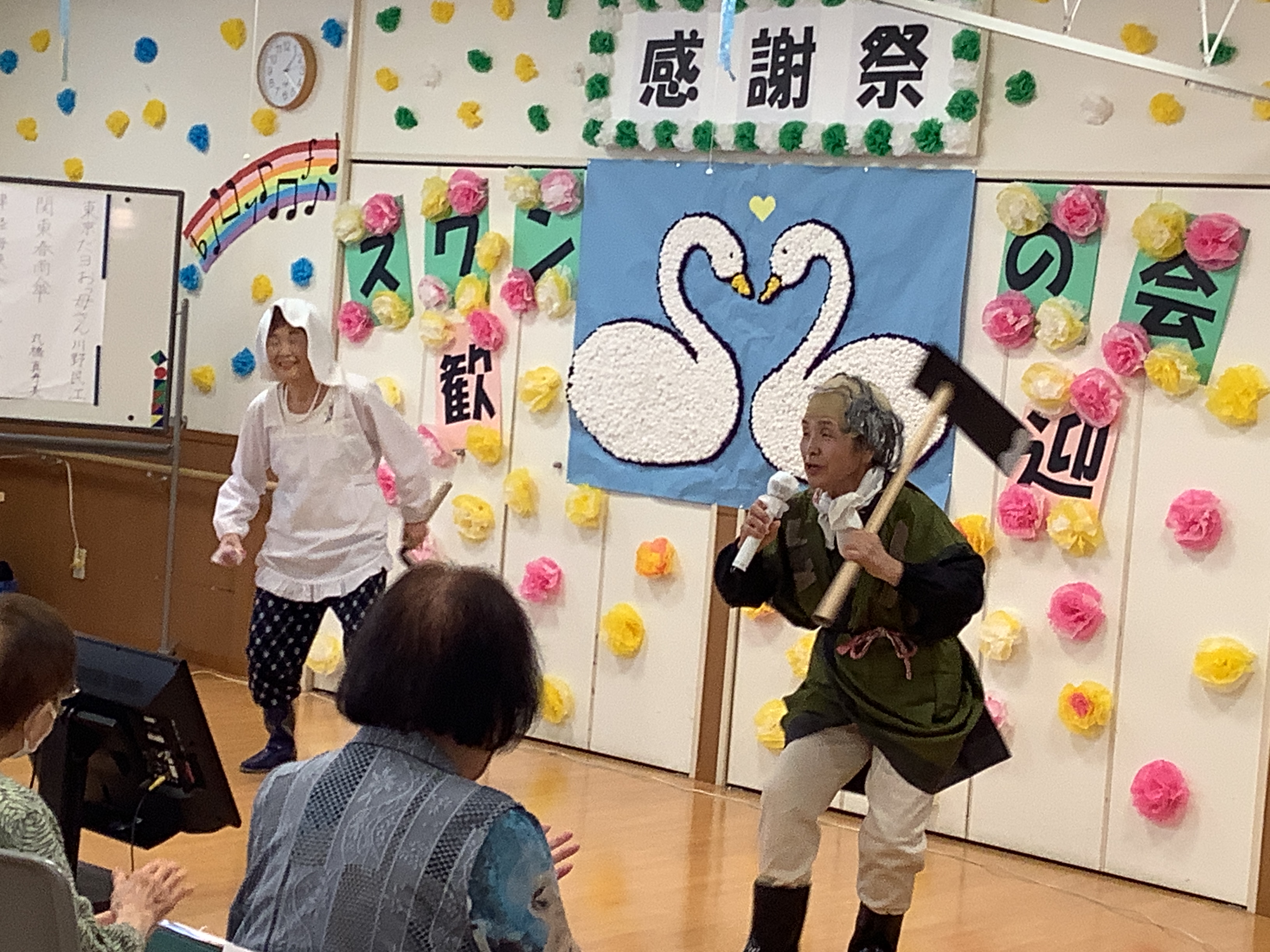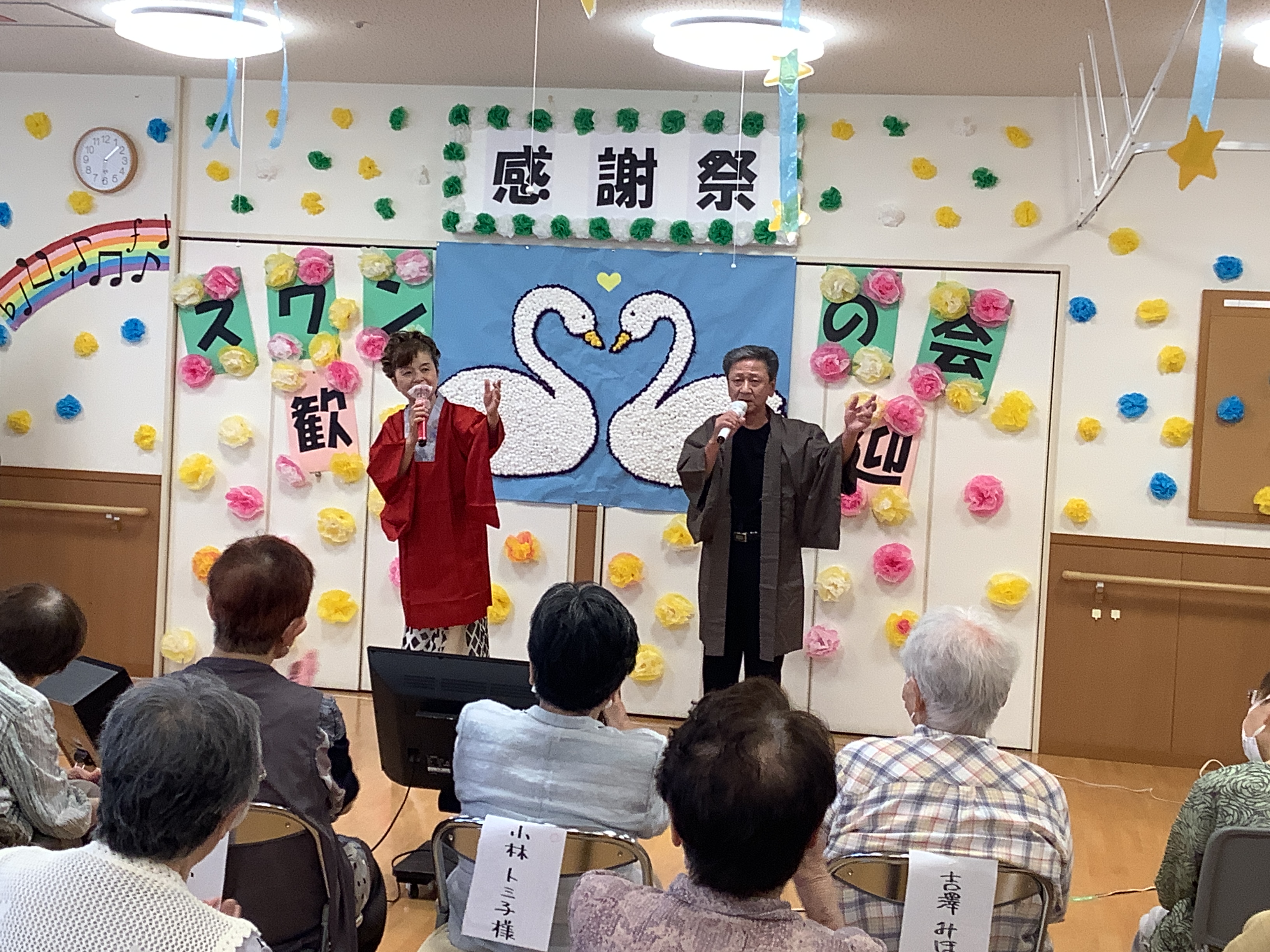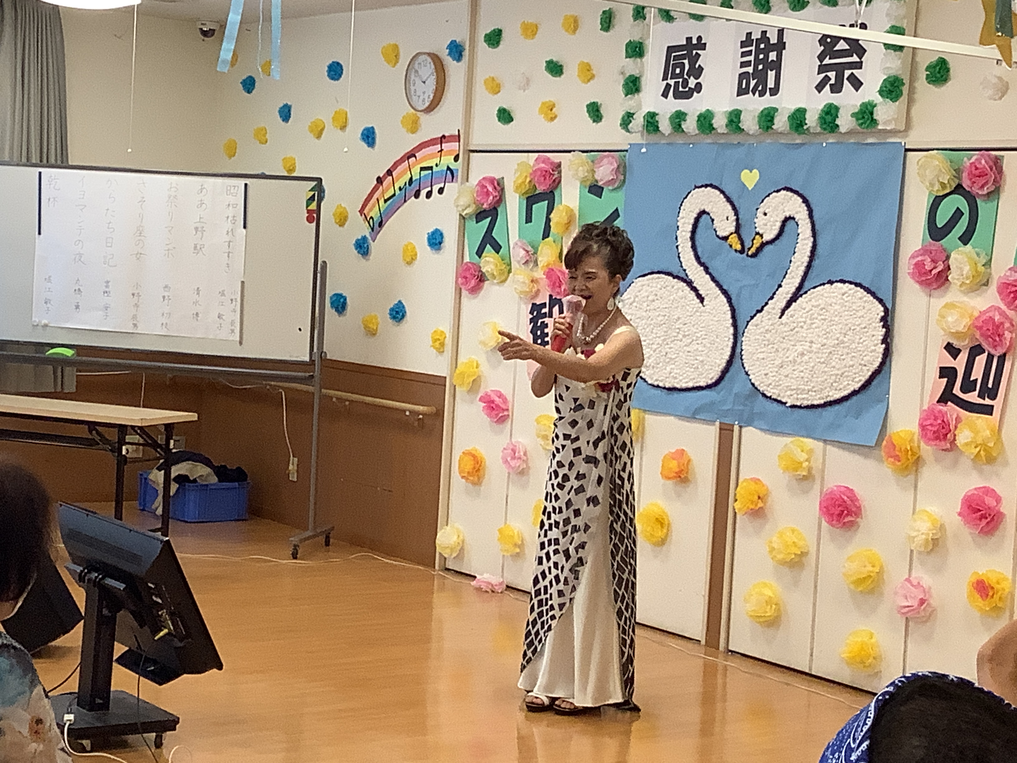スワンの会の皆様の素敵なステージを楽しんで頂きました(*´▽`*) 花ぞのデイサービスには4年ぶりに慰問に来てくださりました(^^♪