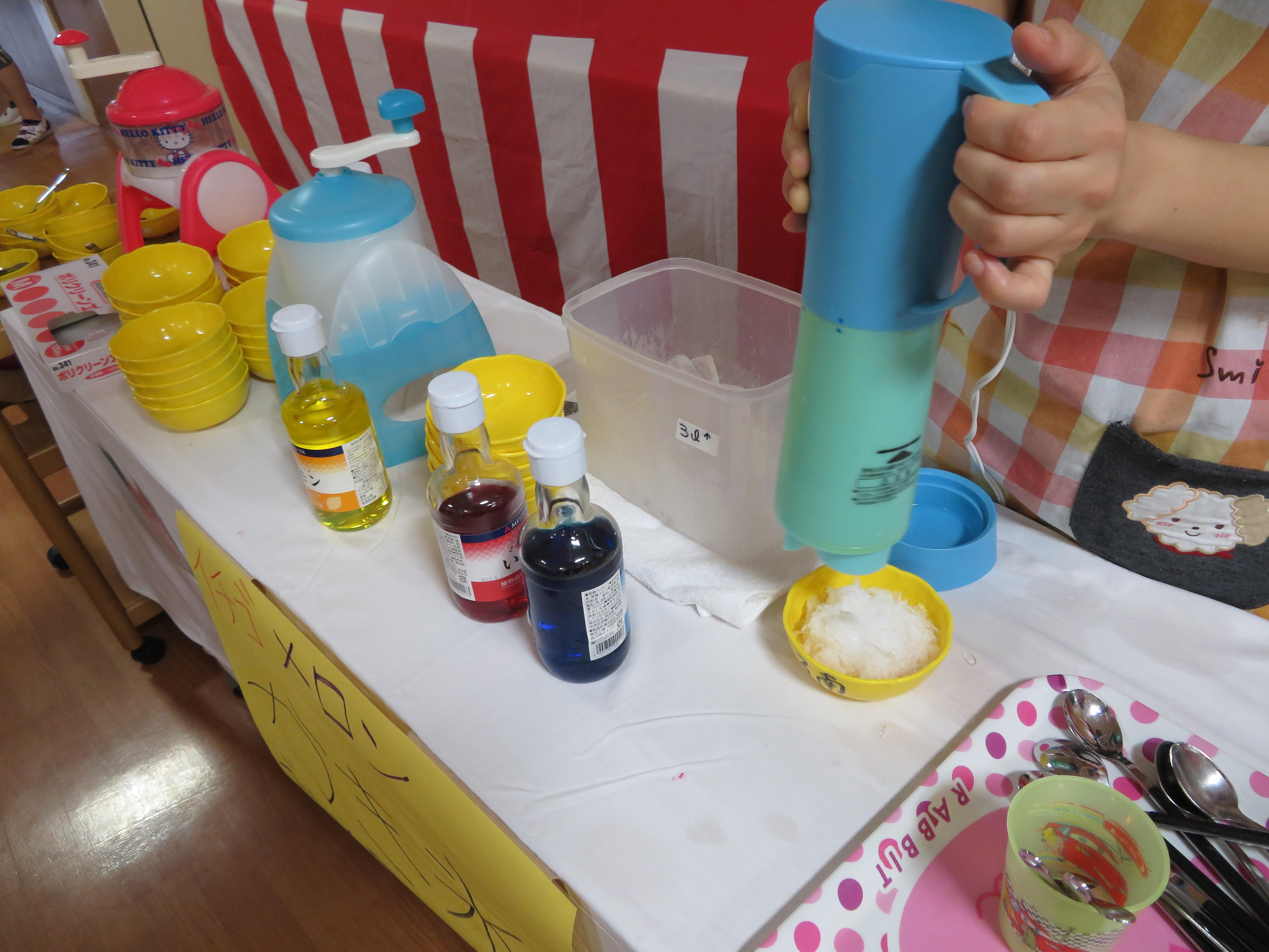 かき氷、わたあめ、チョコバナナ(^^)/ 空き缶倒し、輪投げゲーム(・`д・´)