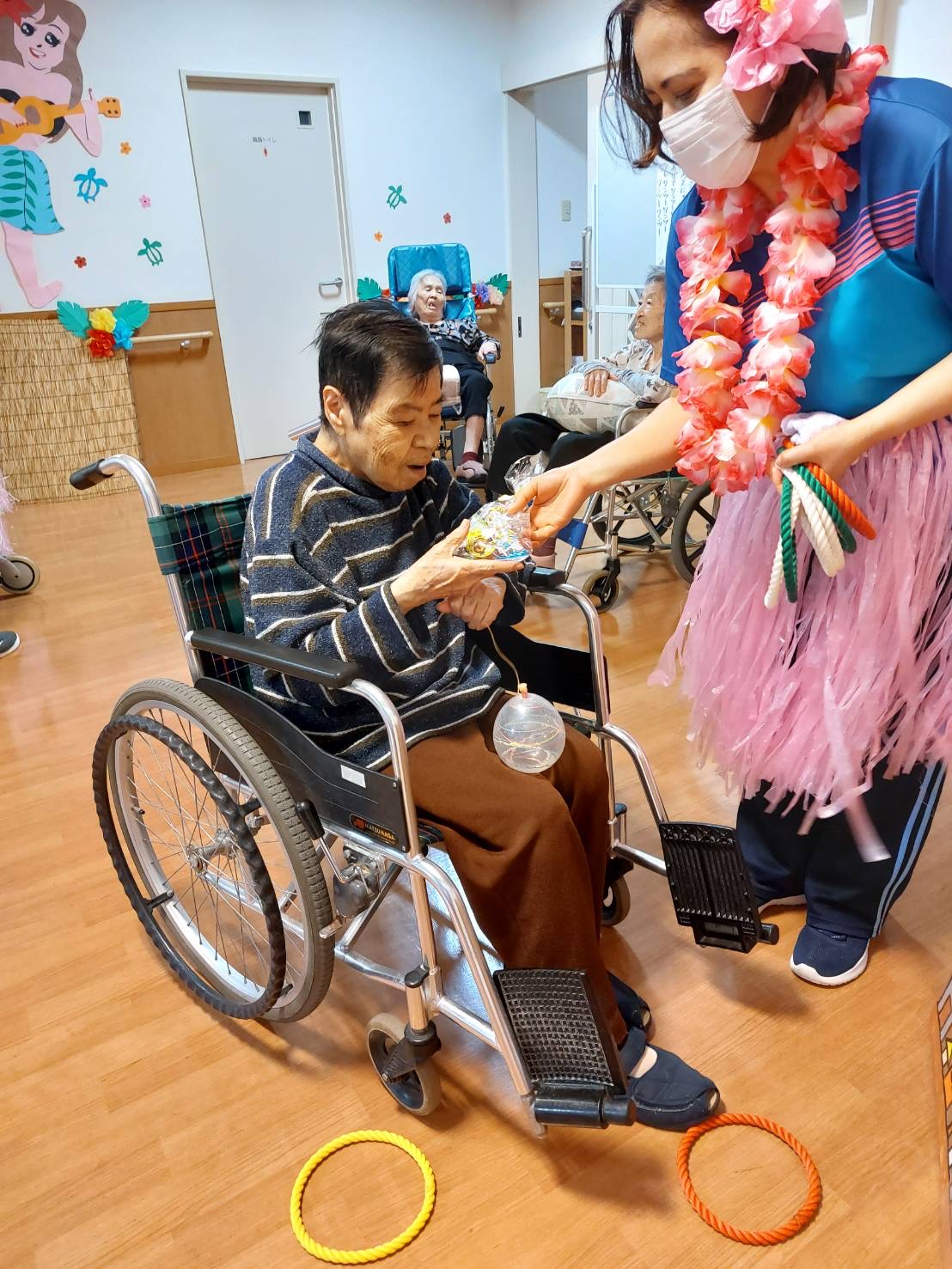 輪投げをした後はプチお菓子袋のプレゼント付きで