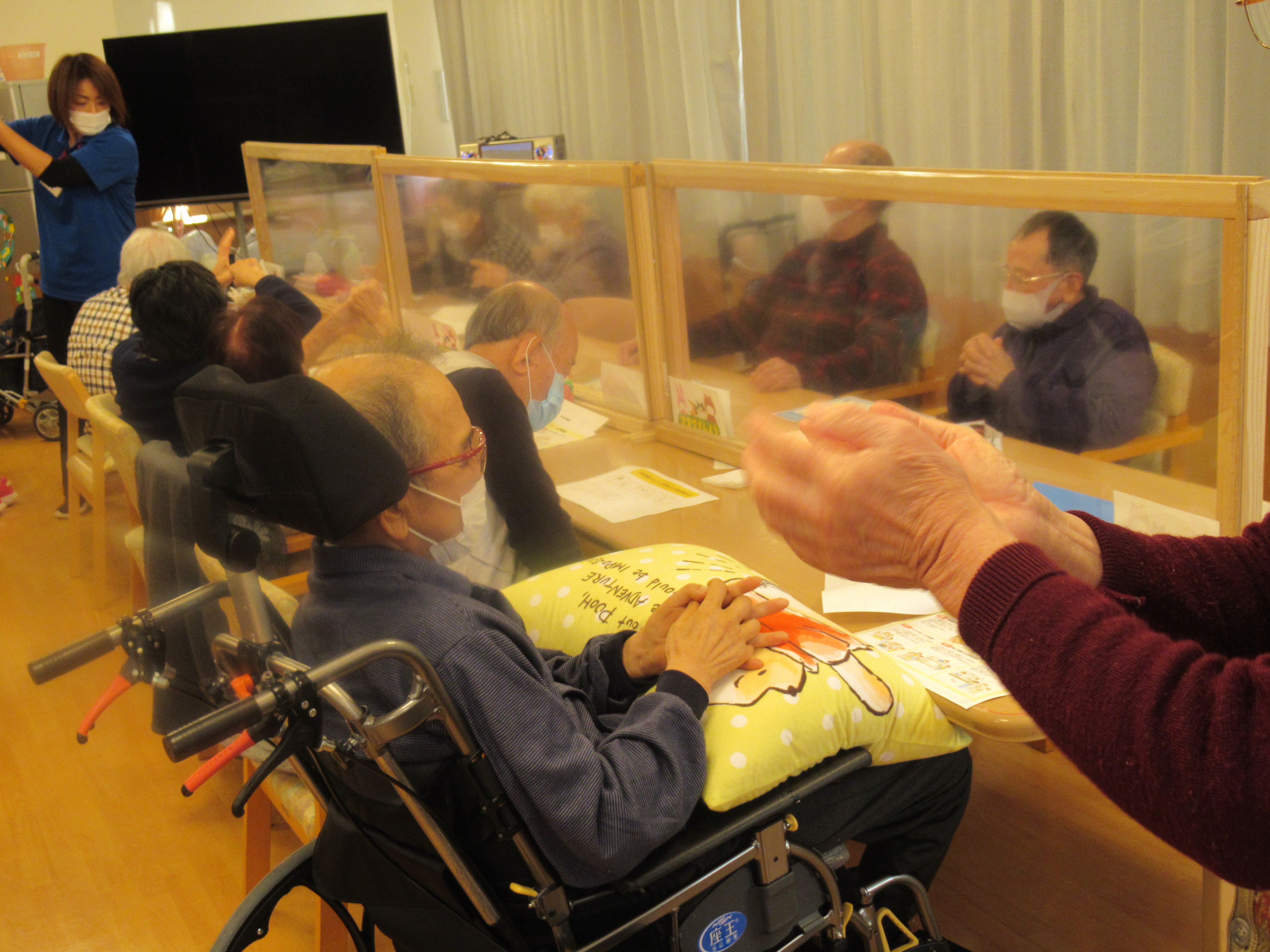 12/7~12/12まで、お隣にあるデイサービスセンタースマイルと協力し利用者様向けの「ウイルス予防・対策 勉強会」行っています。本日で3日目となりましたが手洗いや手指消毒の正しい方法・マスクの付け方・感染しやすい場所・などテーマを分け皆様と勉強しています。利用者様もとても真剣に聞いて下さり、不安な事や質問など沢山発言頂いています。 皆様が安心してデイサービスに通って頂けるよう、これからも感染対策をしっかり行っていきます。