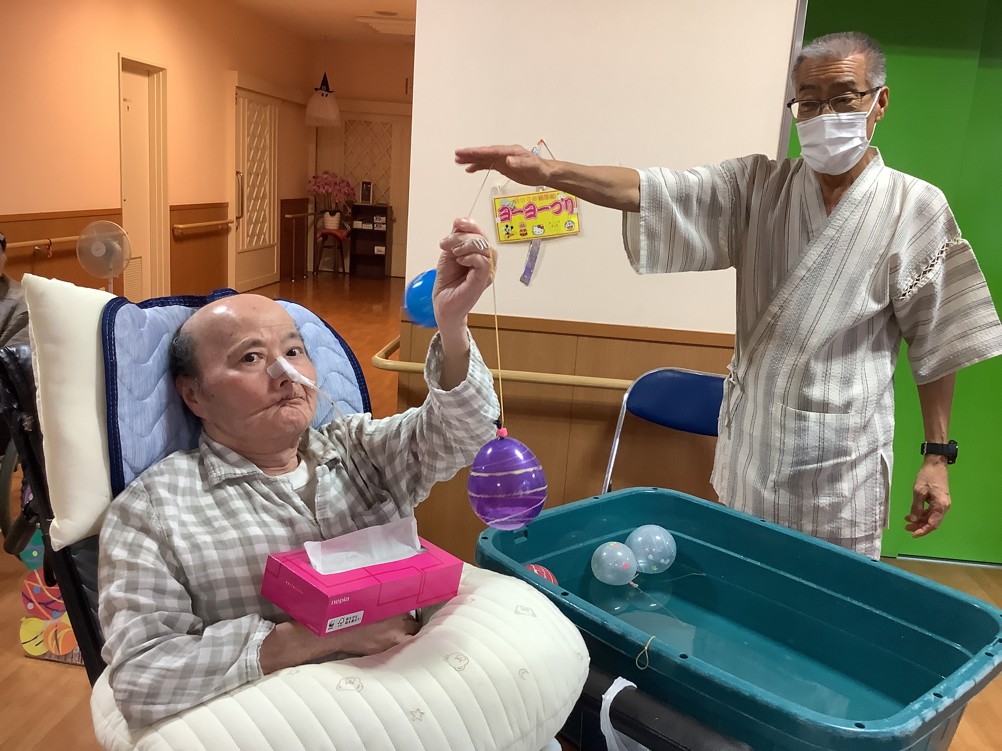 ヨーヨーつり、綿あめ、お手玉ゲームと
