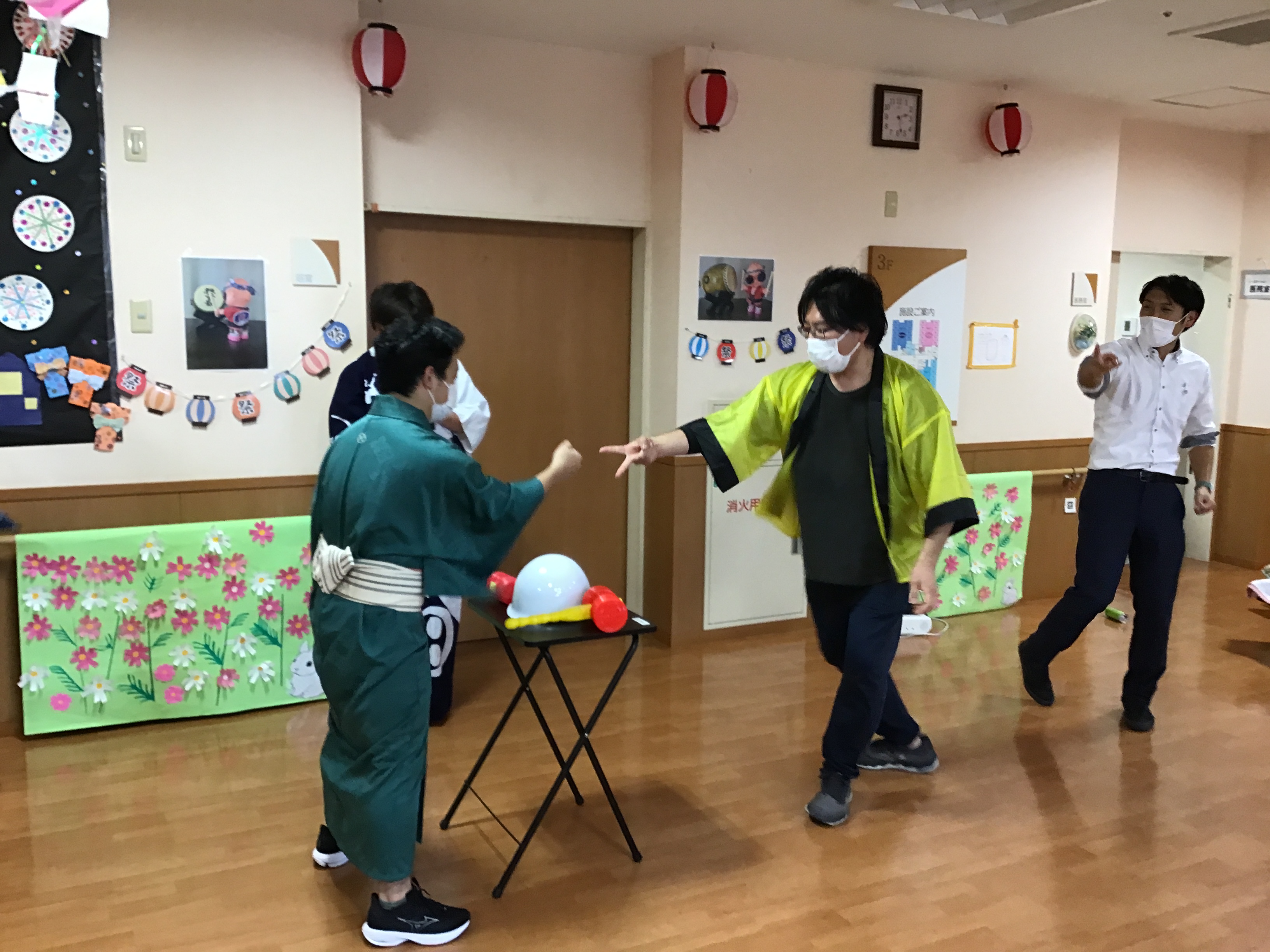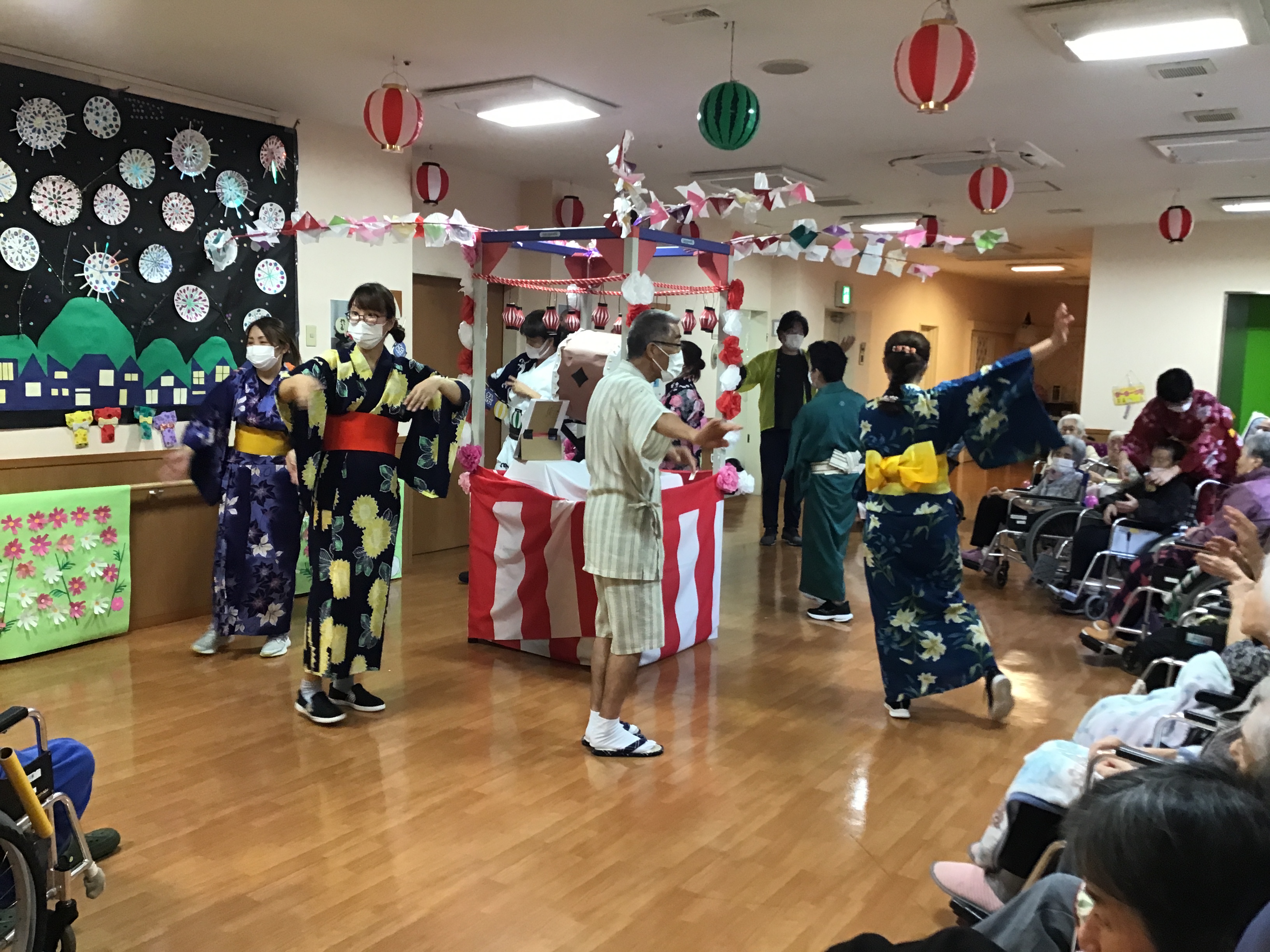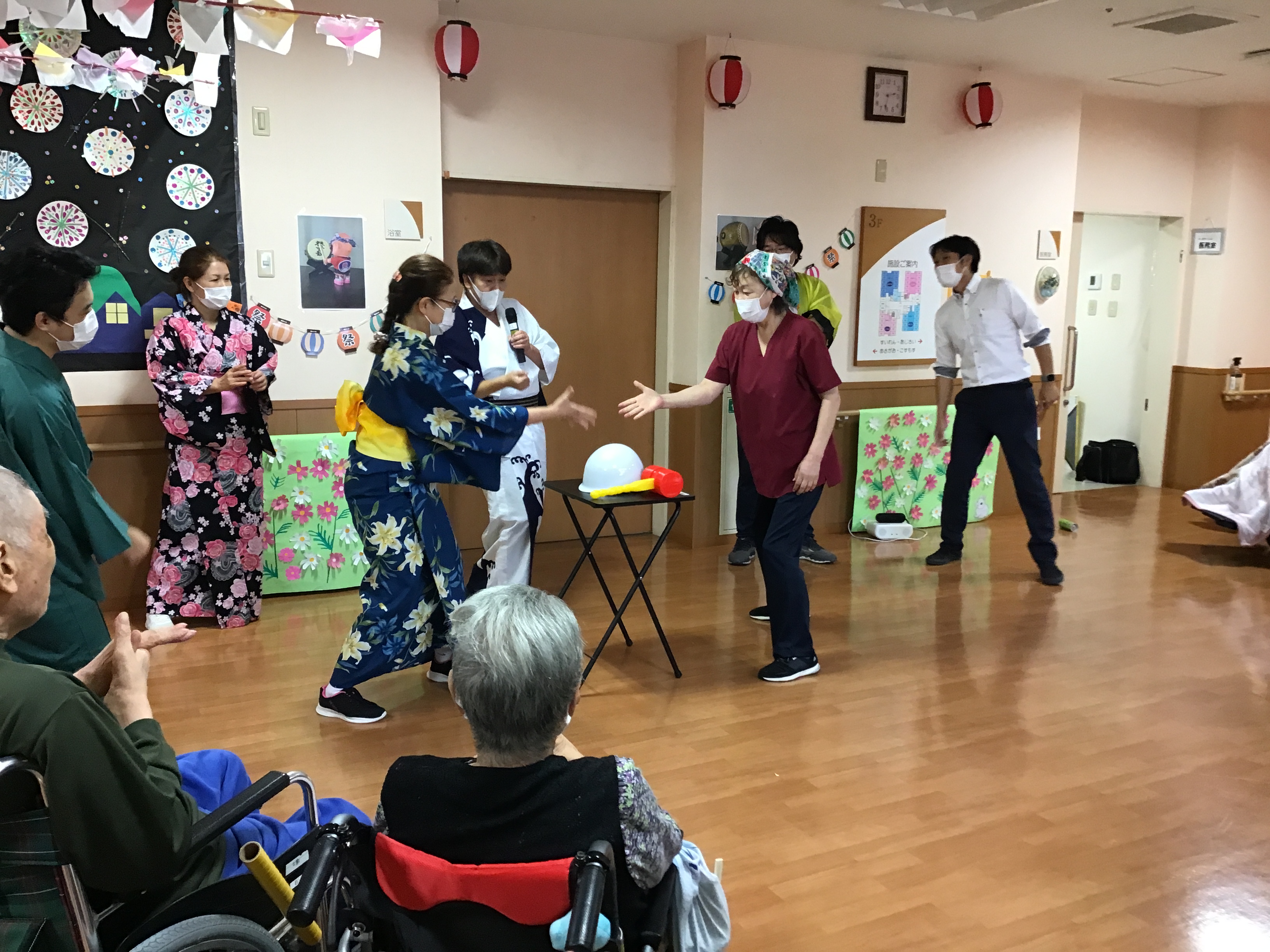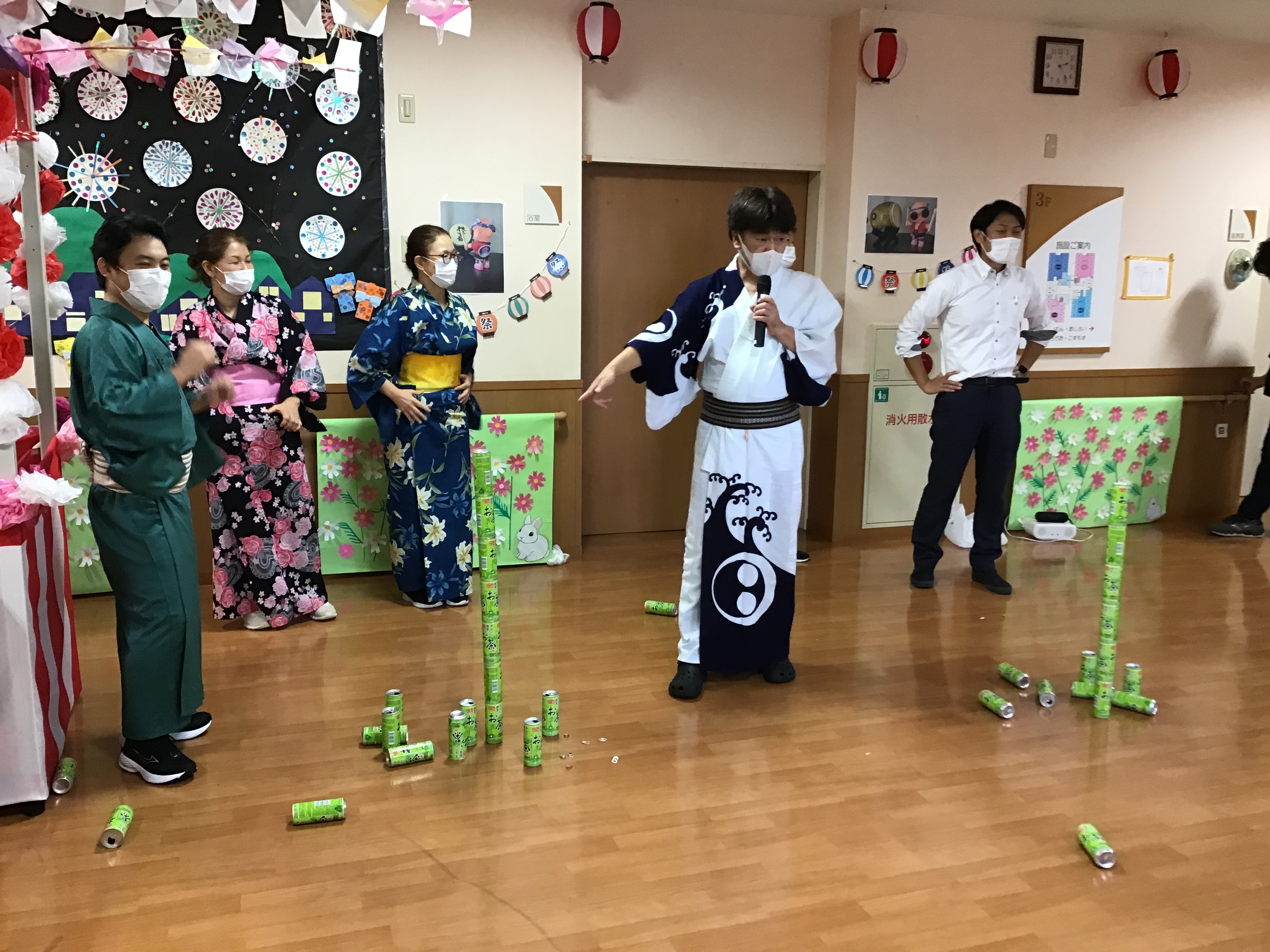 後半は職員による合唱(ふるさと)、ゲーム大会(負けたチームは罰ゲームのパイ投げ付き!!)、秩父音頭の盆踊りを見て楽しんで頂きました♡