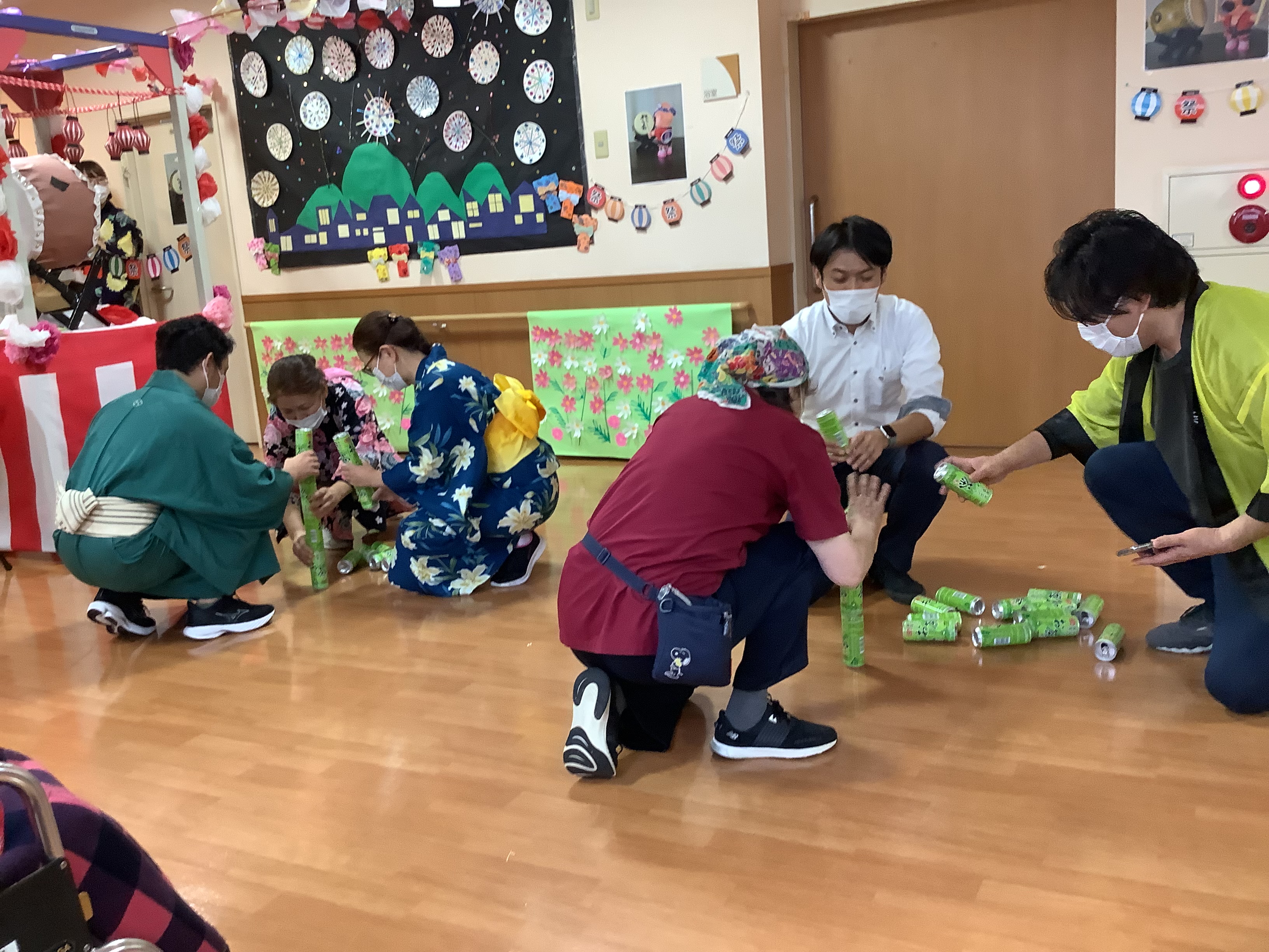 空き缶積み競争と叩いてかぶってじゃんけんポン