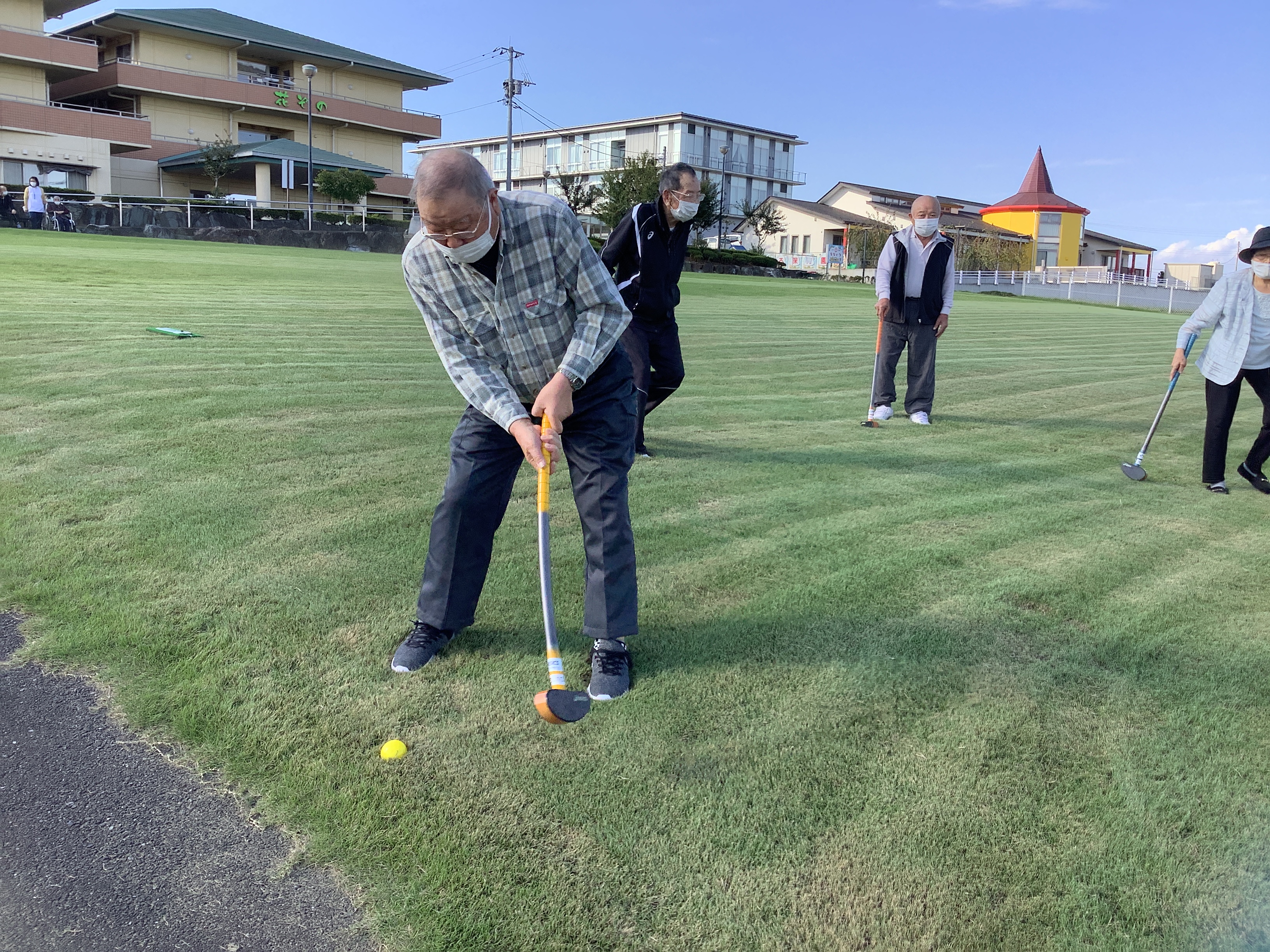 天気の良い日には外の芝生広場でグラウンドゴルフを楽しんで頂いています( *´艸`)