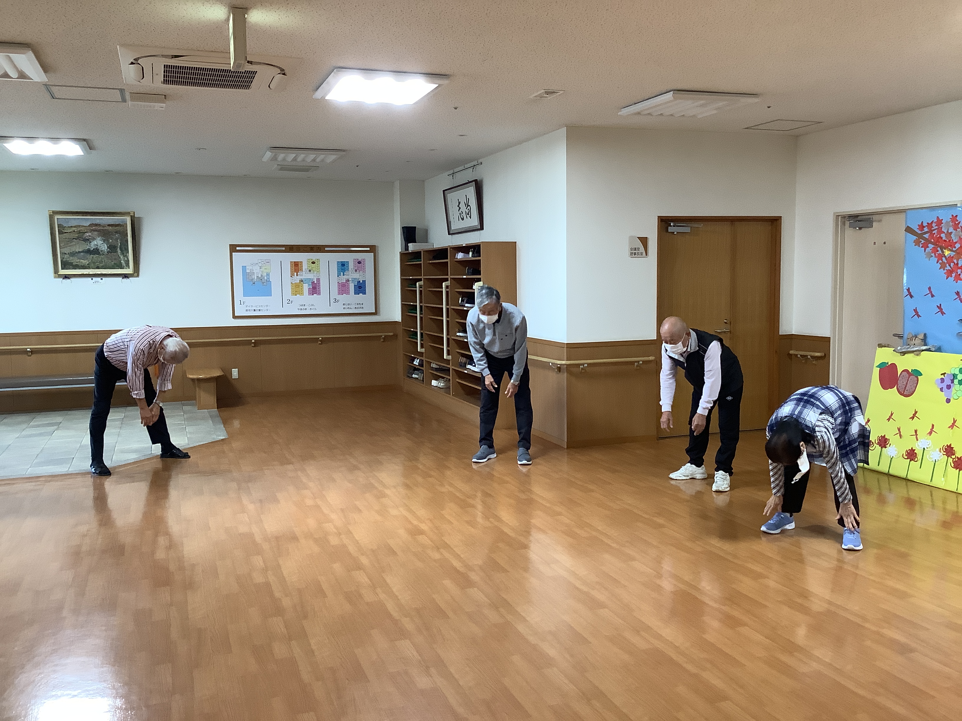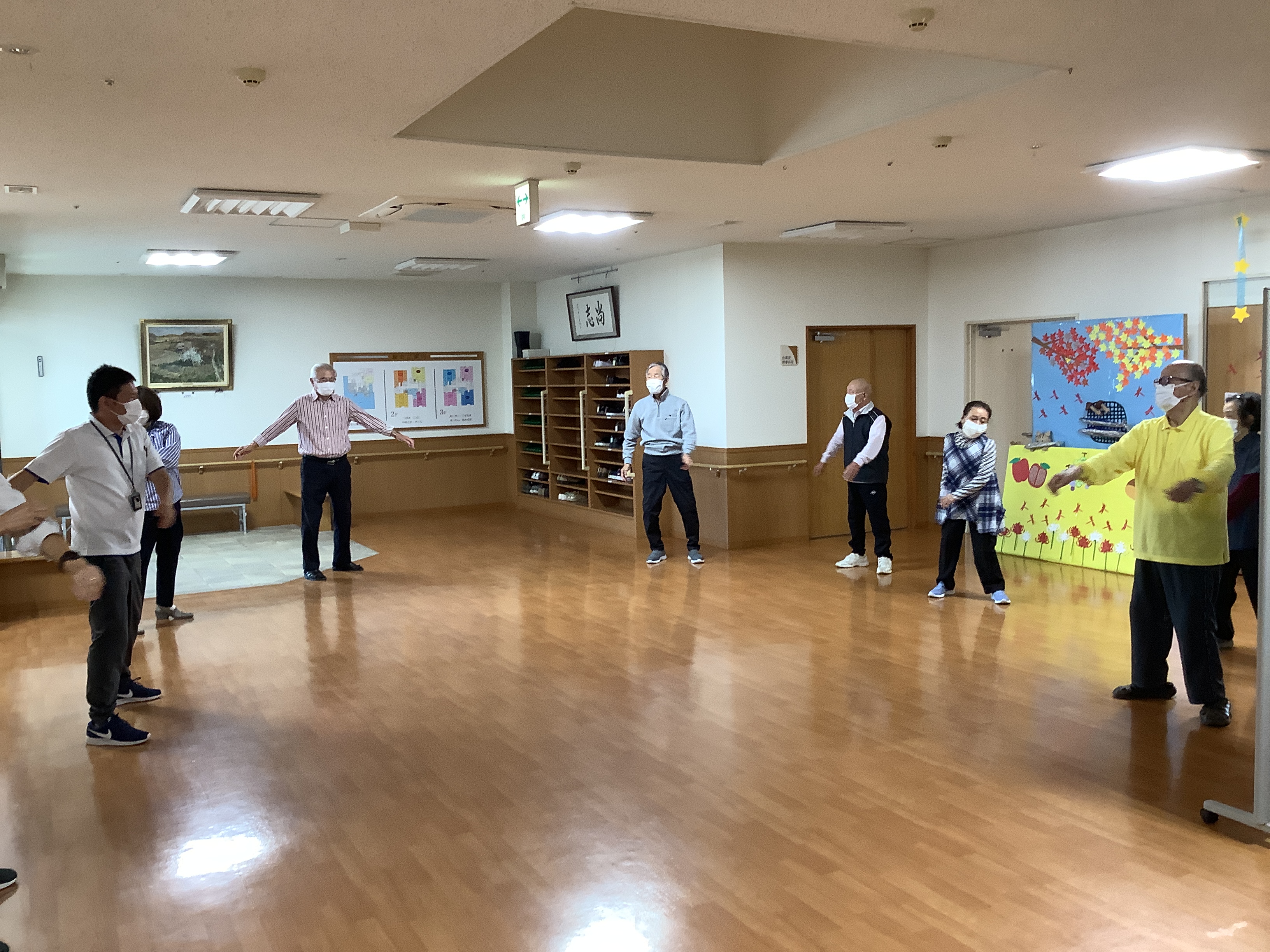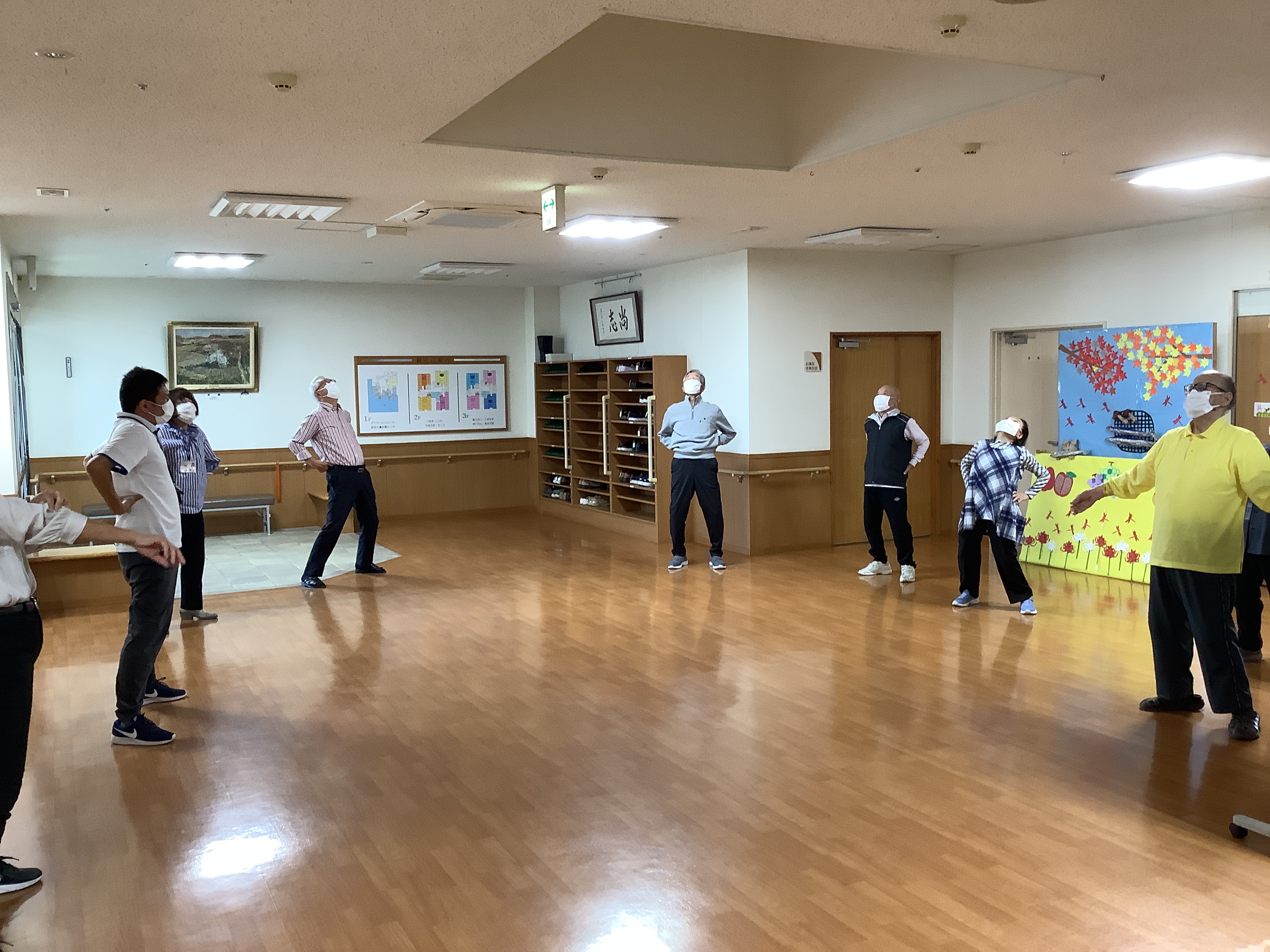 毎朝、ホールで事務所職員さん達とラジオ体操を行っています(^^)/