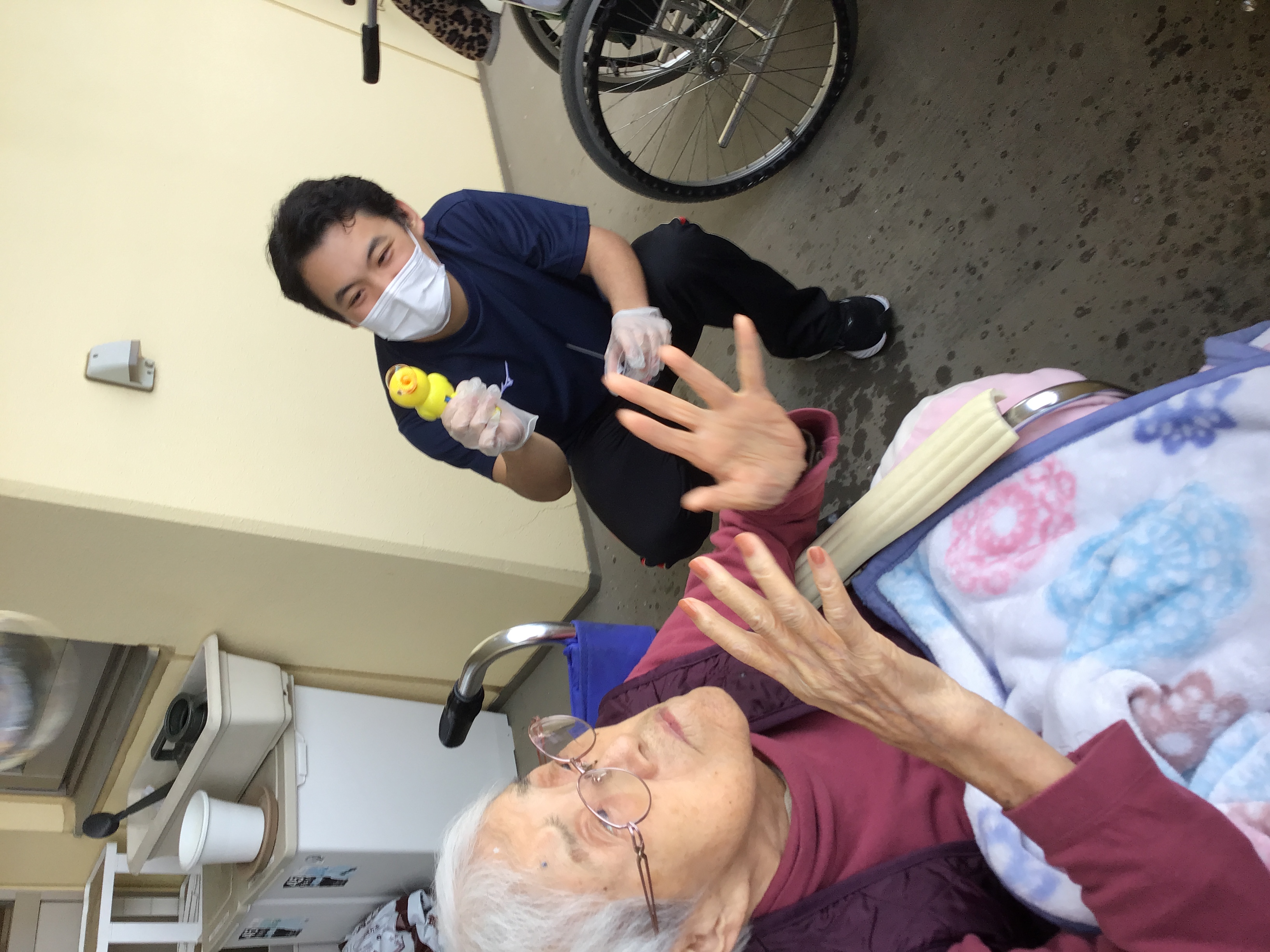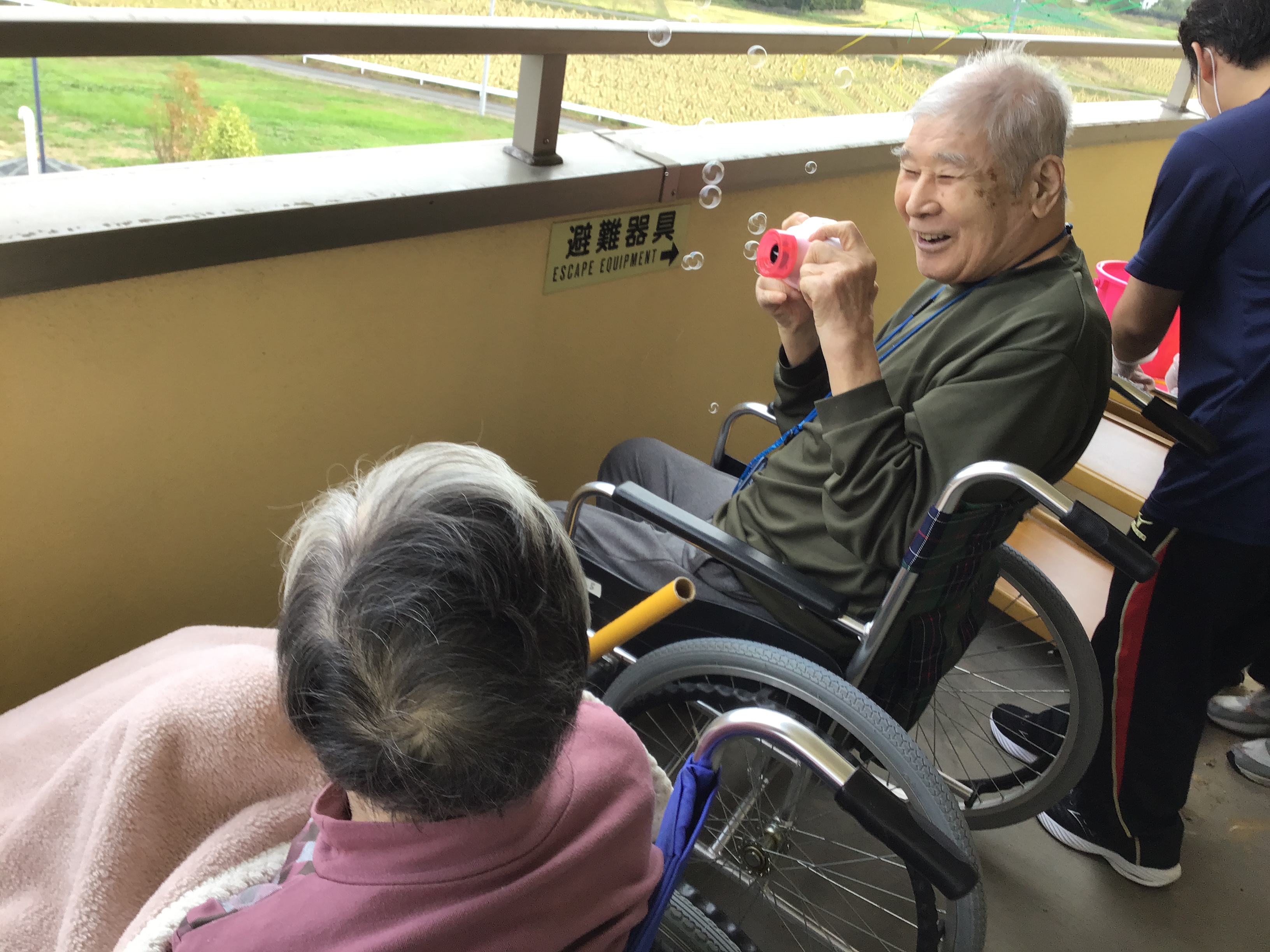 シャボン玉を掴もうとされたりいい笑顔が沢山見られました(o^―^o)!!!