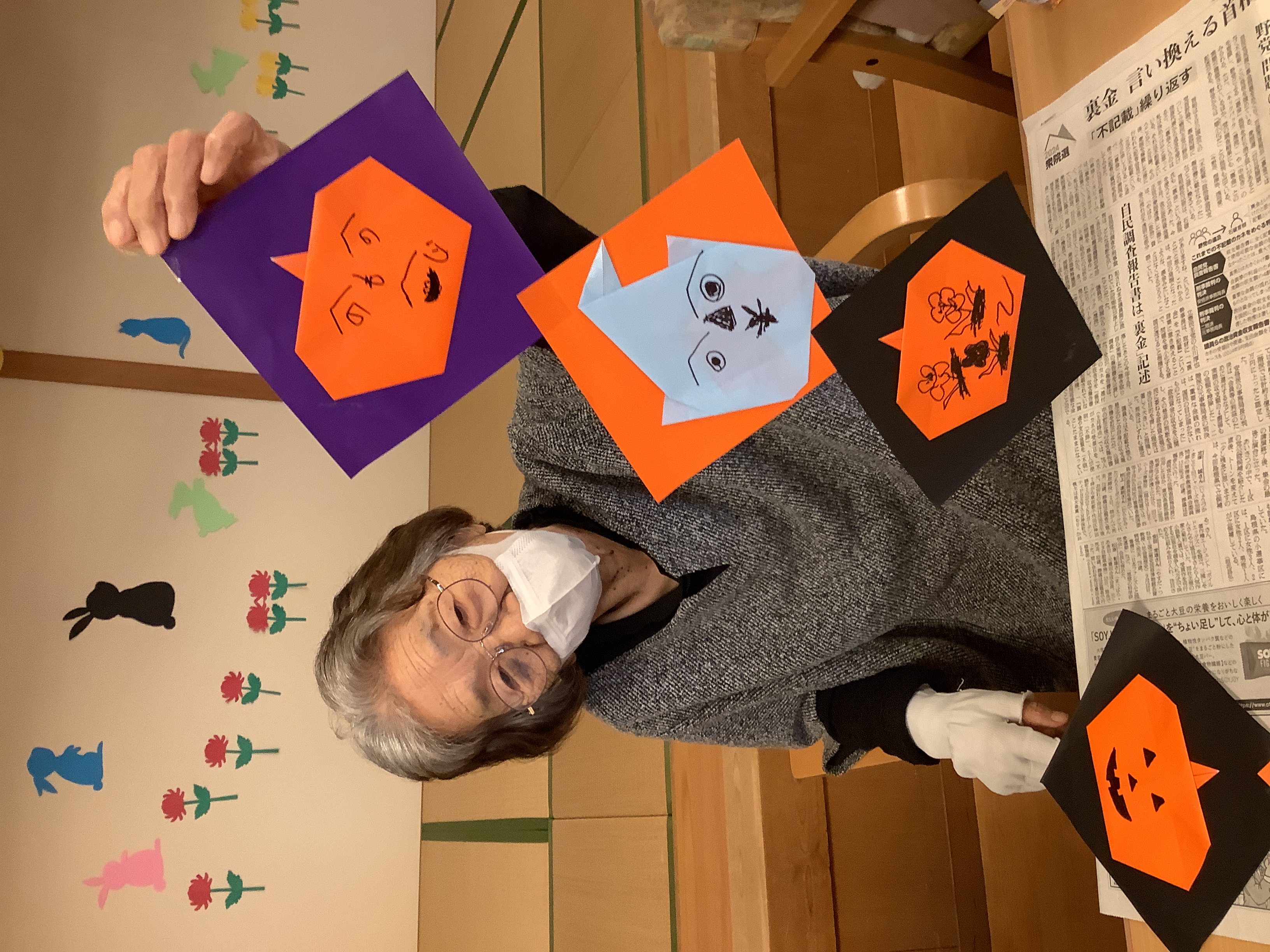 ハロウィンのかぼちゃとお化けの飾りが出来上がりました!(^^)!