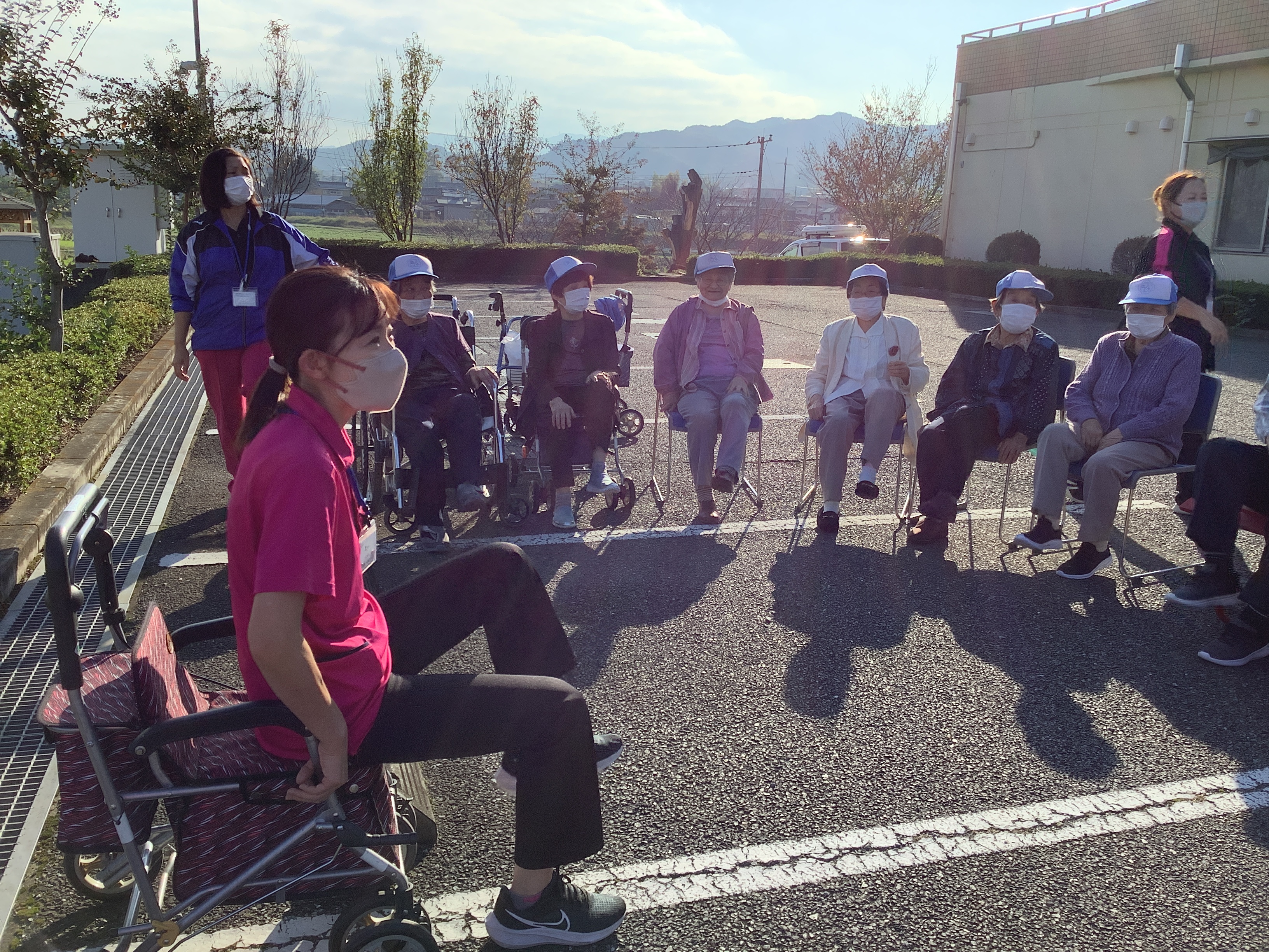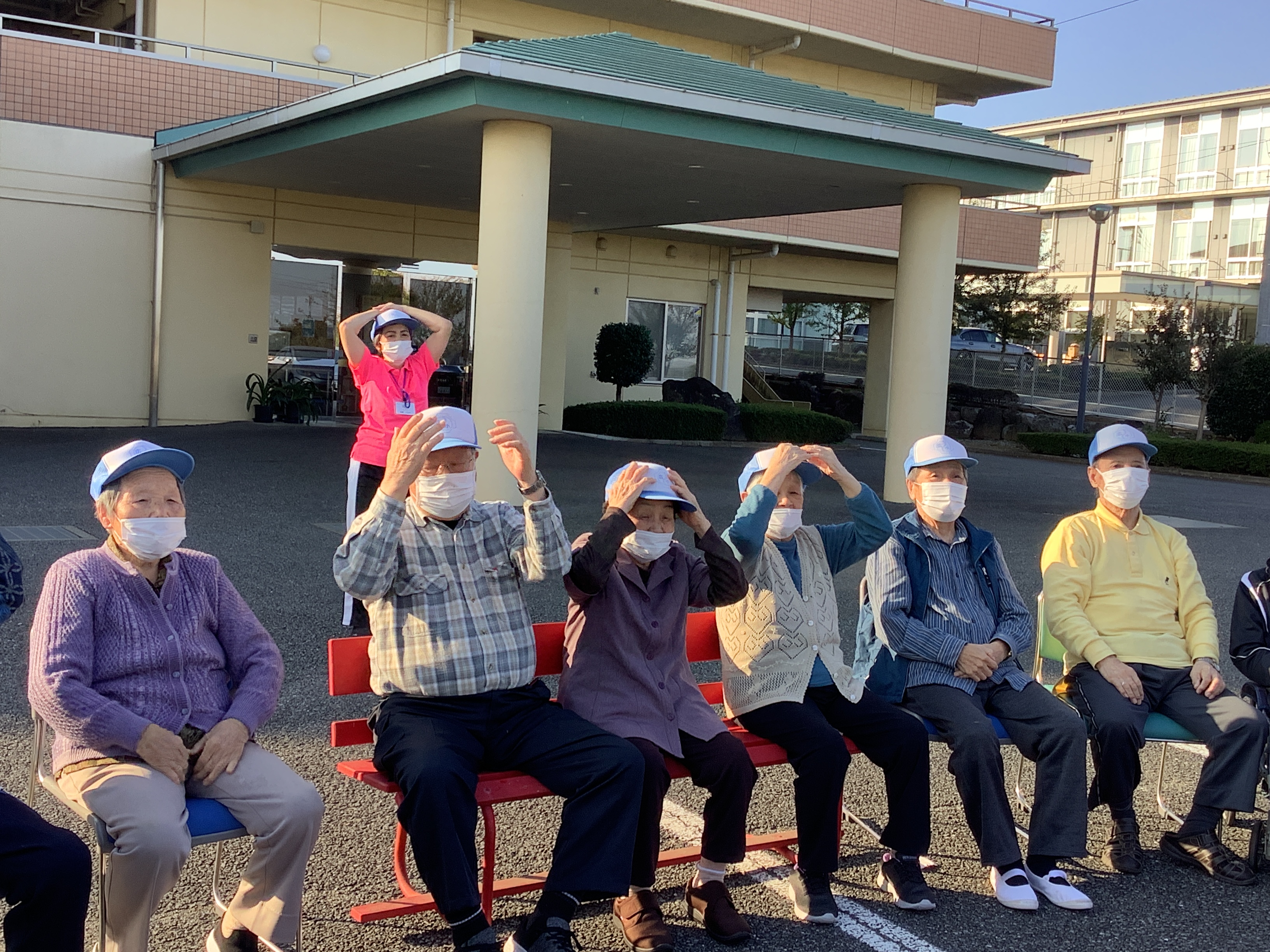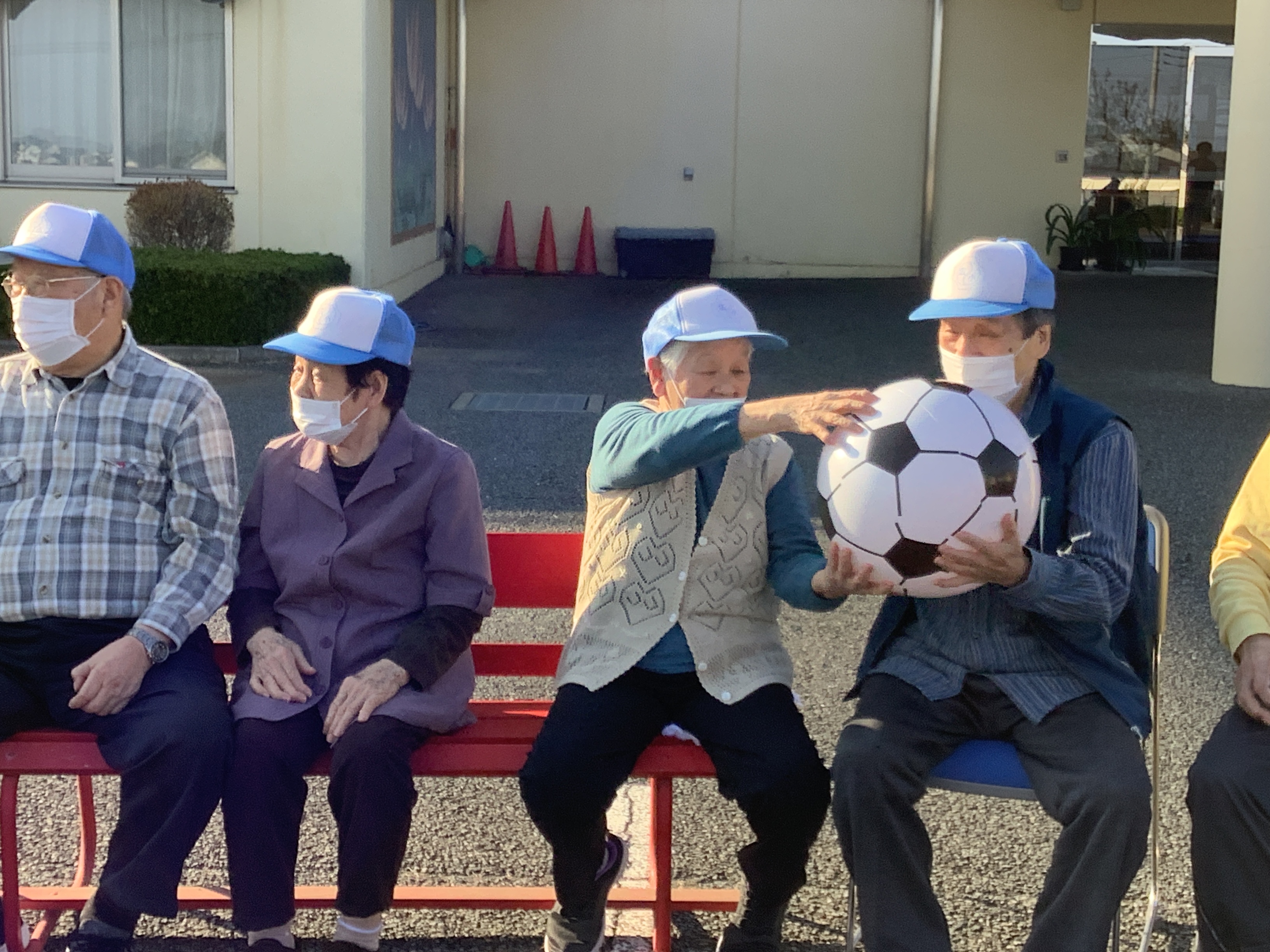 天気の良い日は外で体操やレクを行っています(^^♪ 同じレクや体操でも外で行うと、皆様良い笑顔ですね(^^)/
