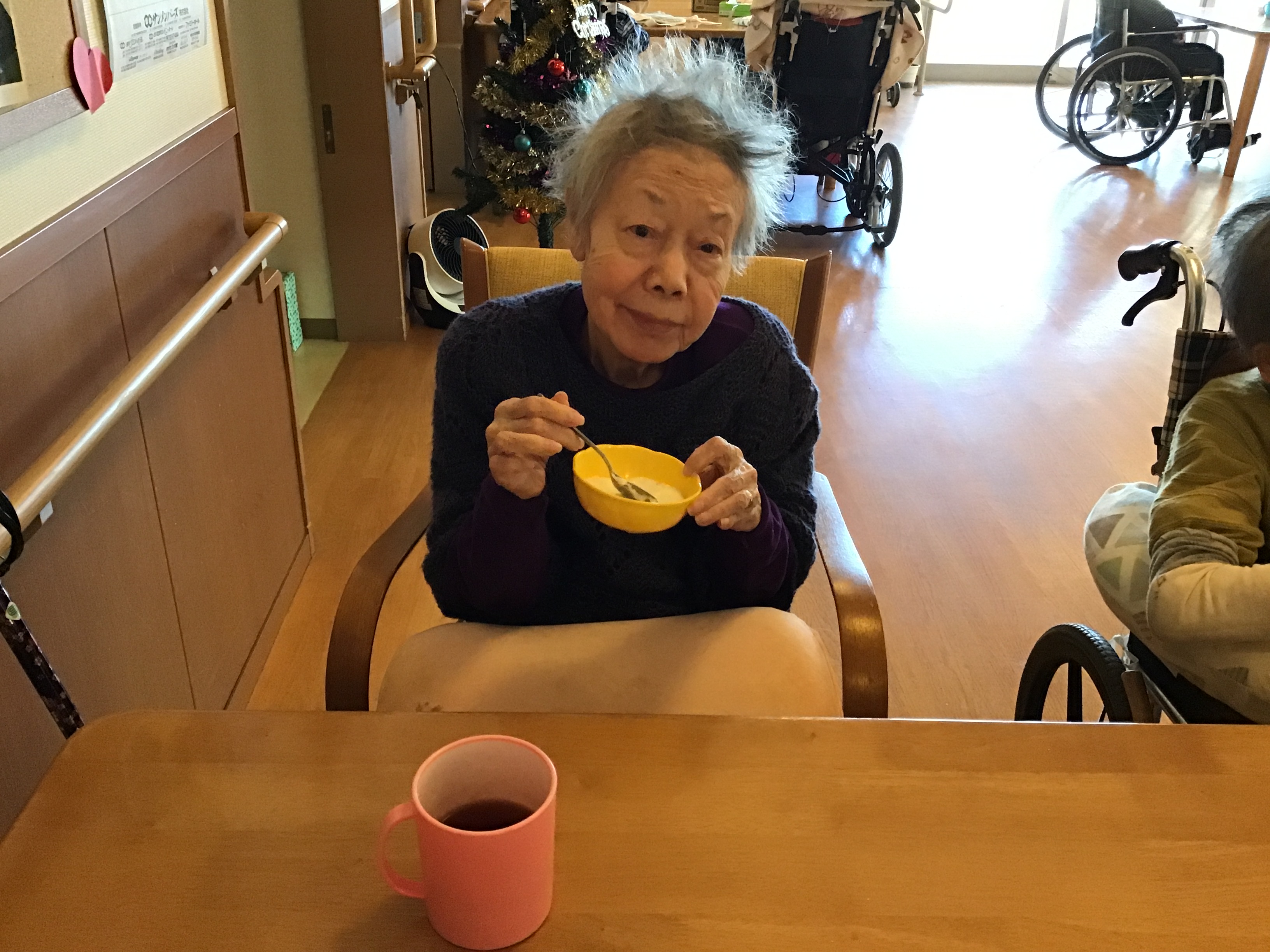 おやつレクで桃のフルーチェを作りました(^^♪