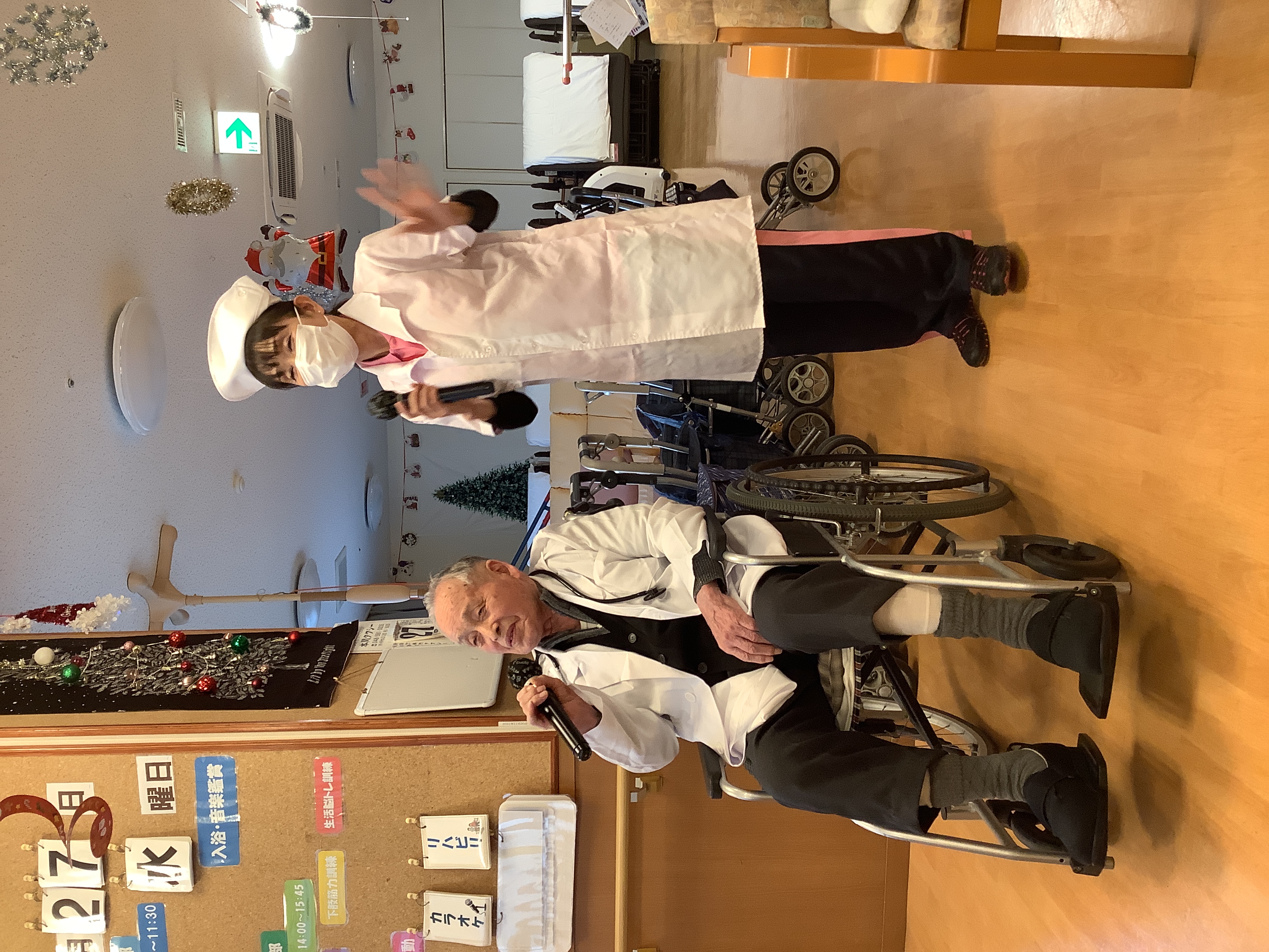 レクリエーション活動のカラオケではご夫婦で一緒に歌ったり、職員と一緒に歌ったり、楽しんで頂いています(^^)/ 時には、衣装も着ちゃいます(*^^*)