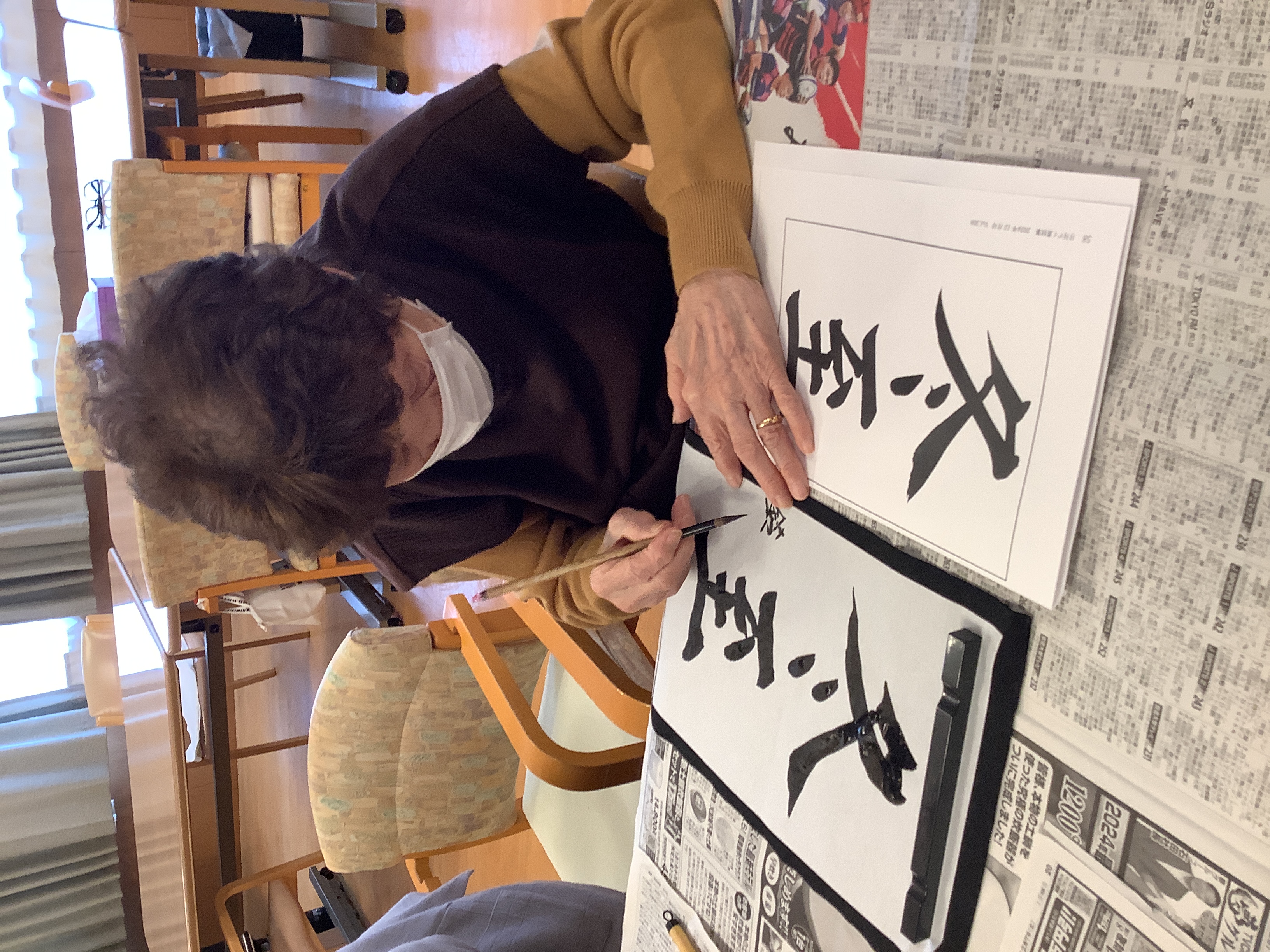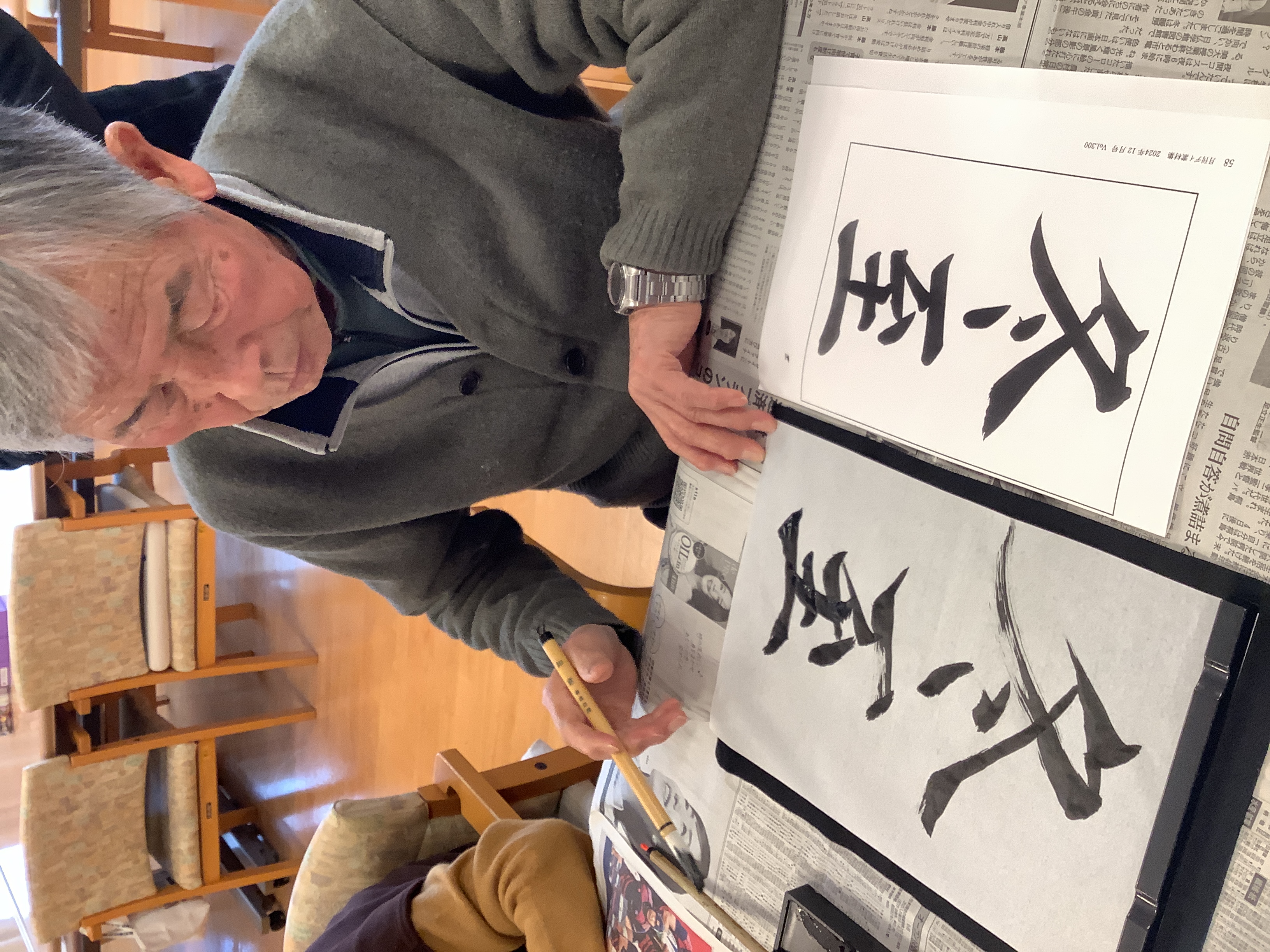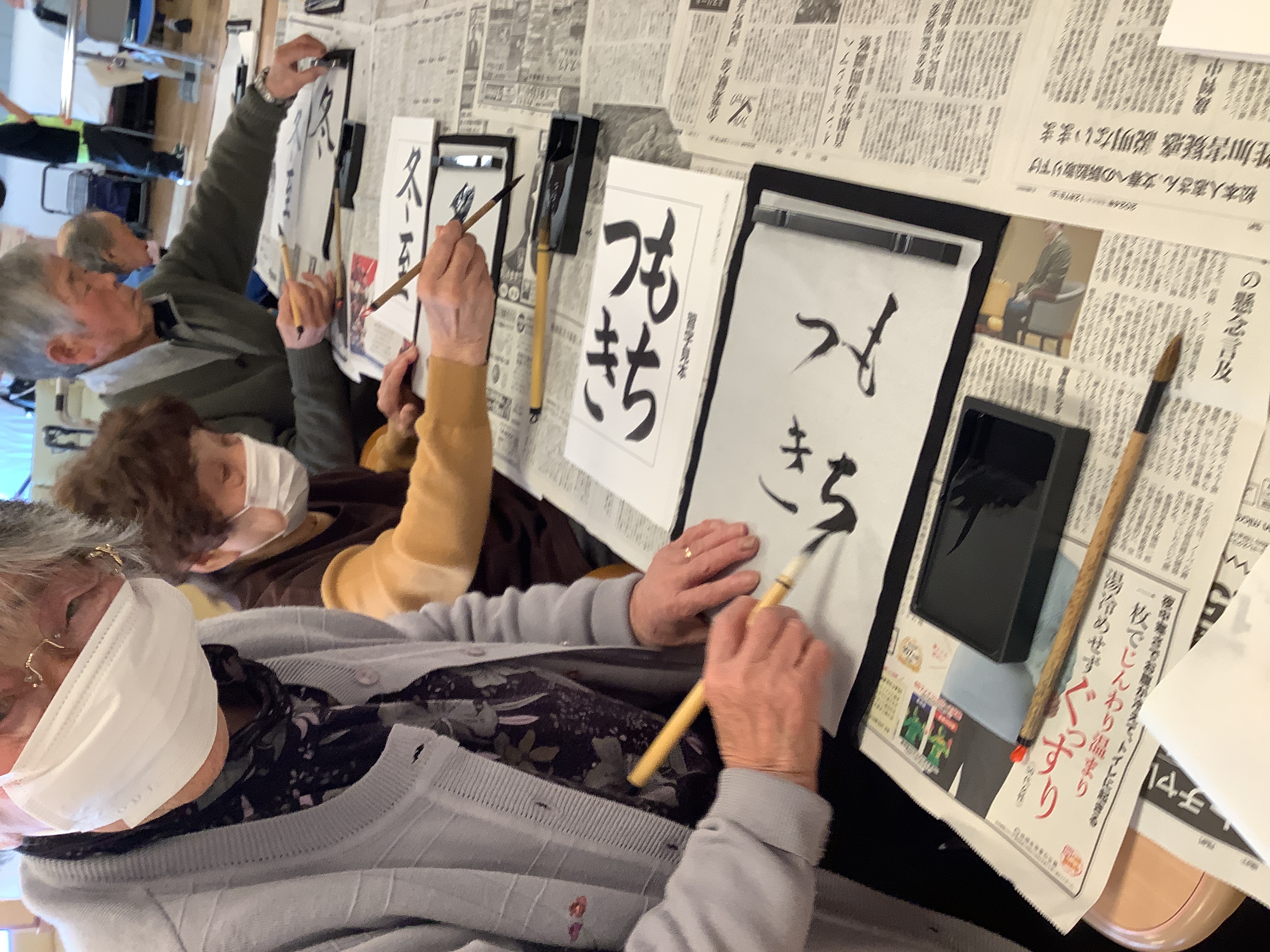 今日も書道を楽しんで頂きました(^^♪皆様の作品は一階ホールに展示させて頂いています!(^^)!