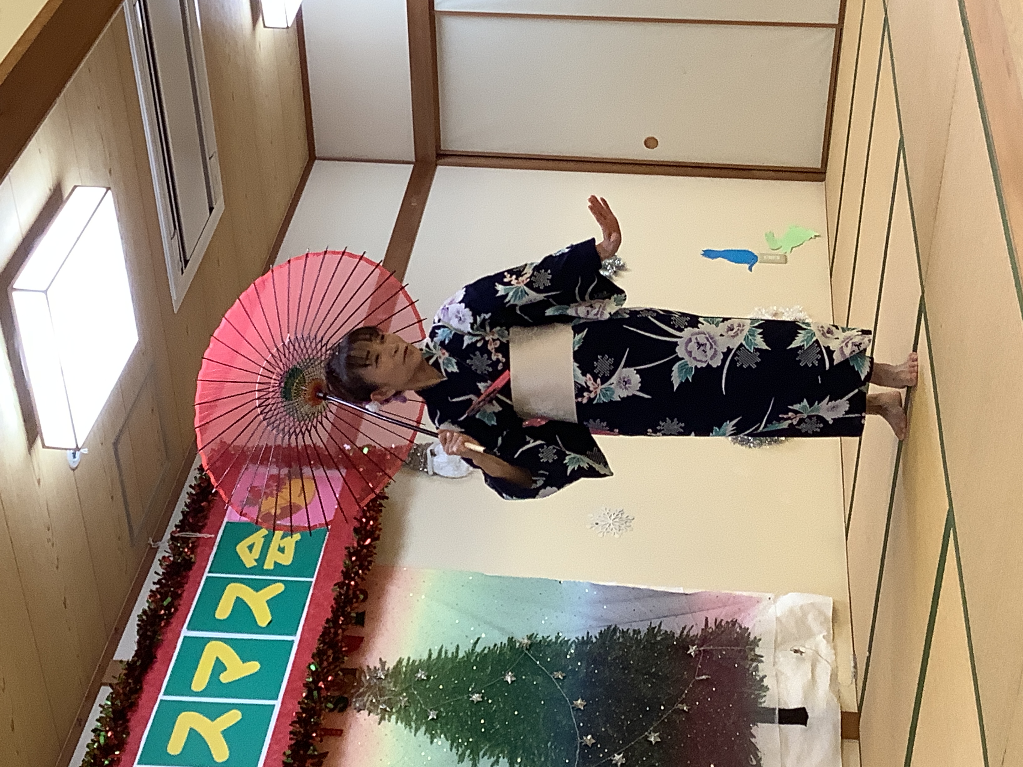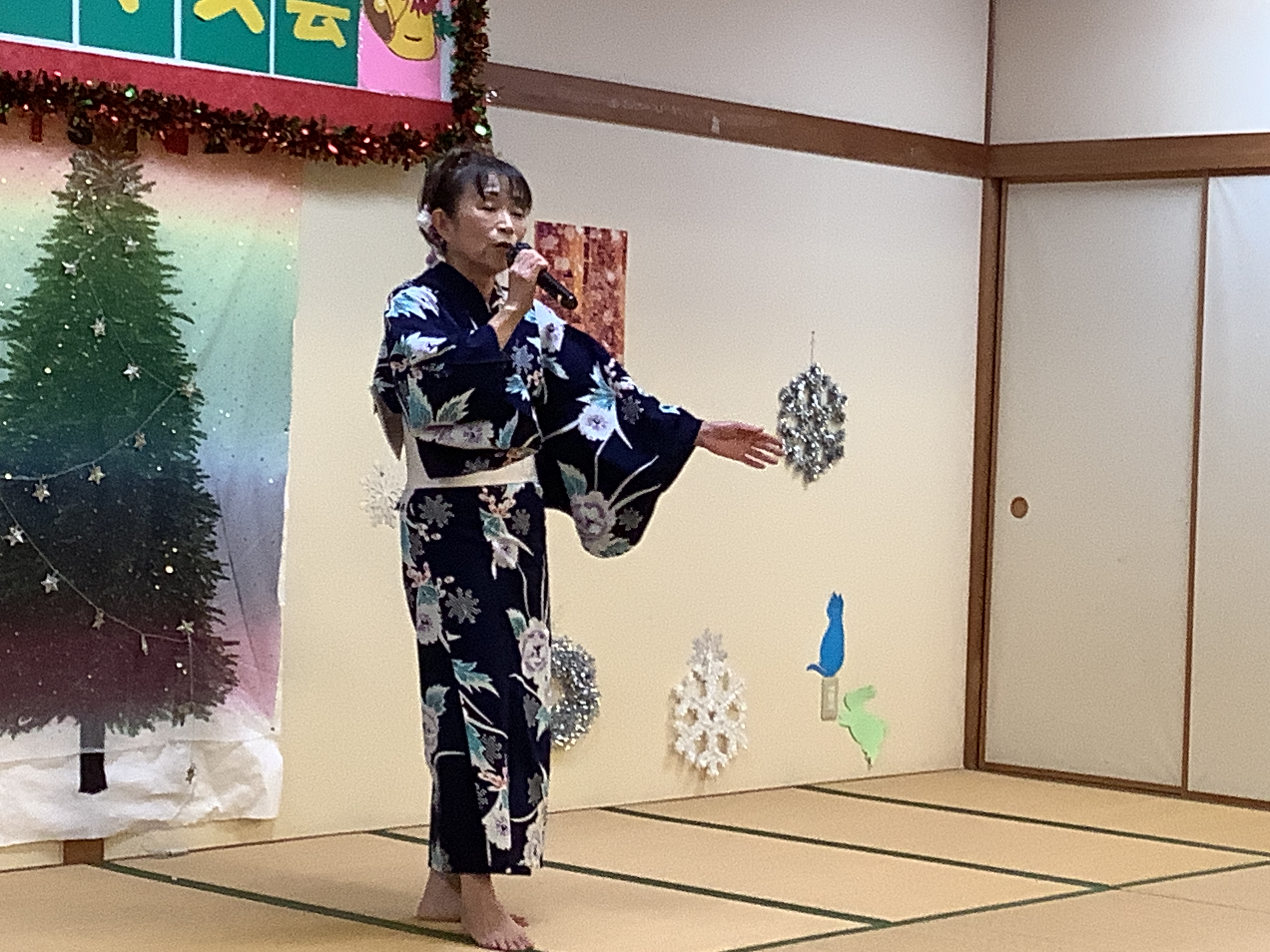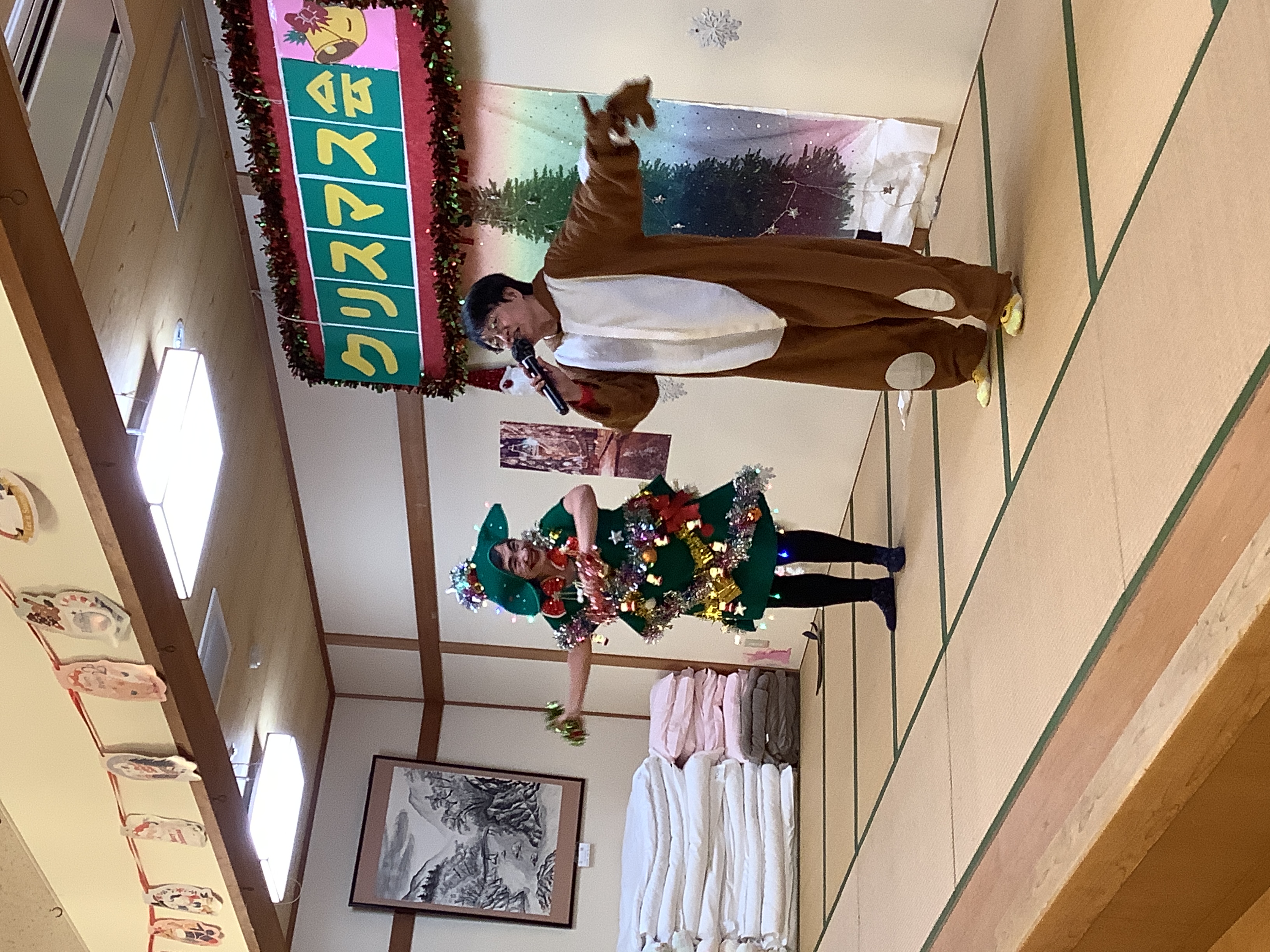 次は、クリスマスツリーに変装した志村けん?からの、飛び入り参加の特養職員による歌唱☆大変盛り上がりました。