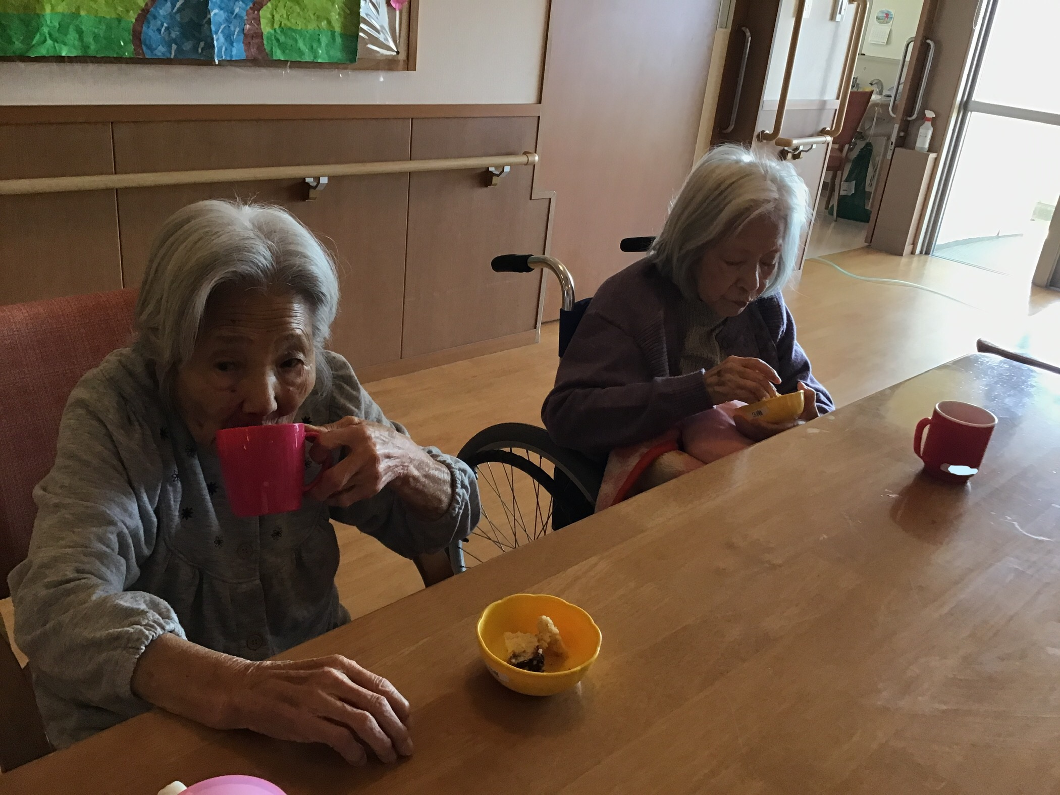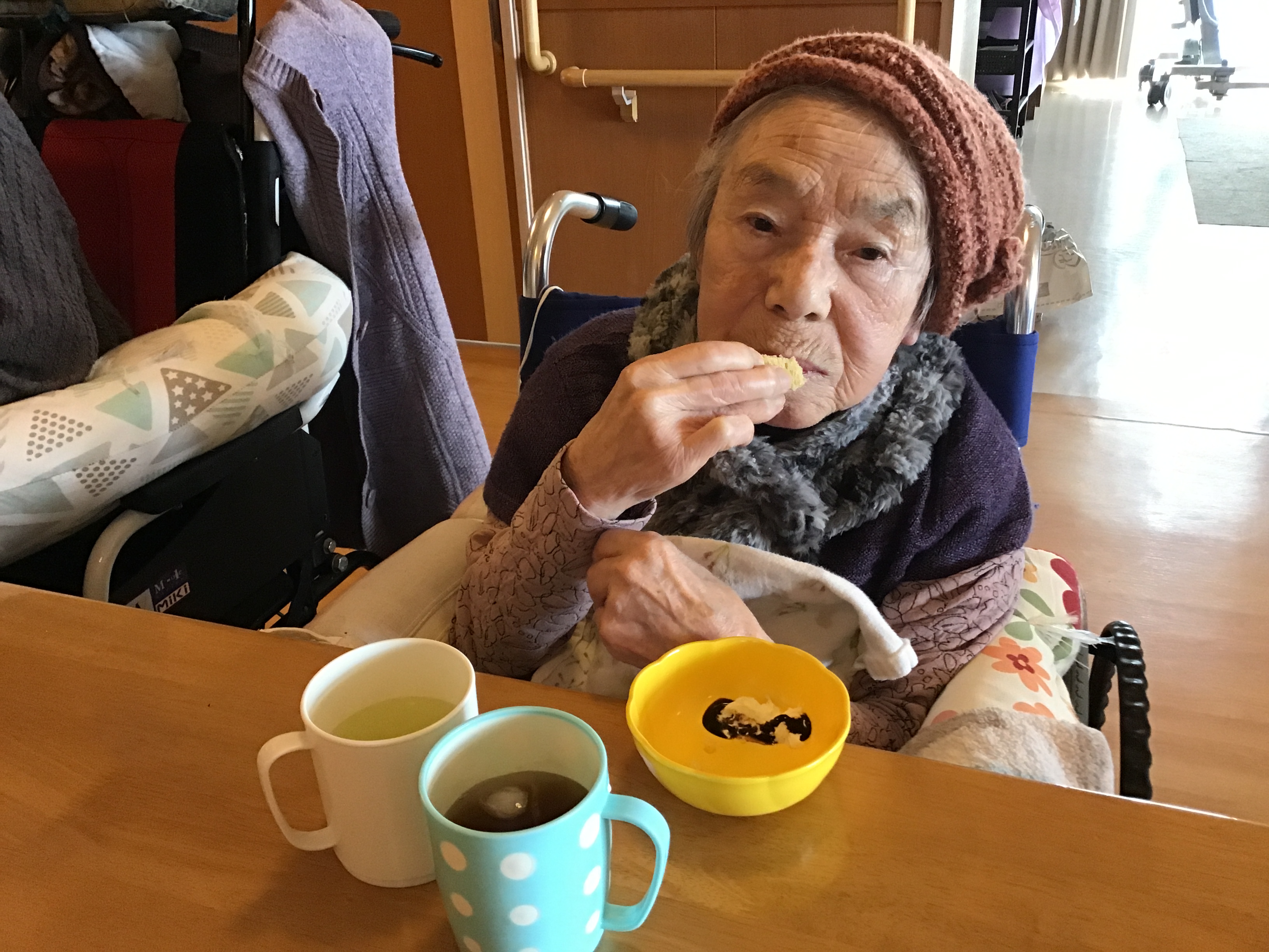 きな粉とチョコマーブルの蒸しパンに生クリームとチョコソースをデッィプして食べて頂きました(o^―^o)