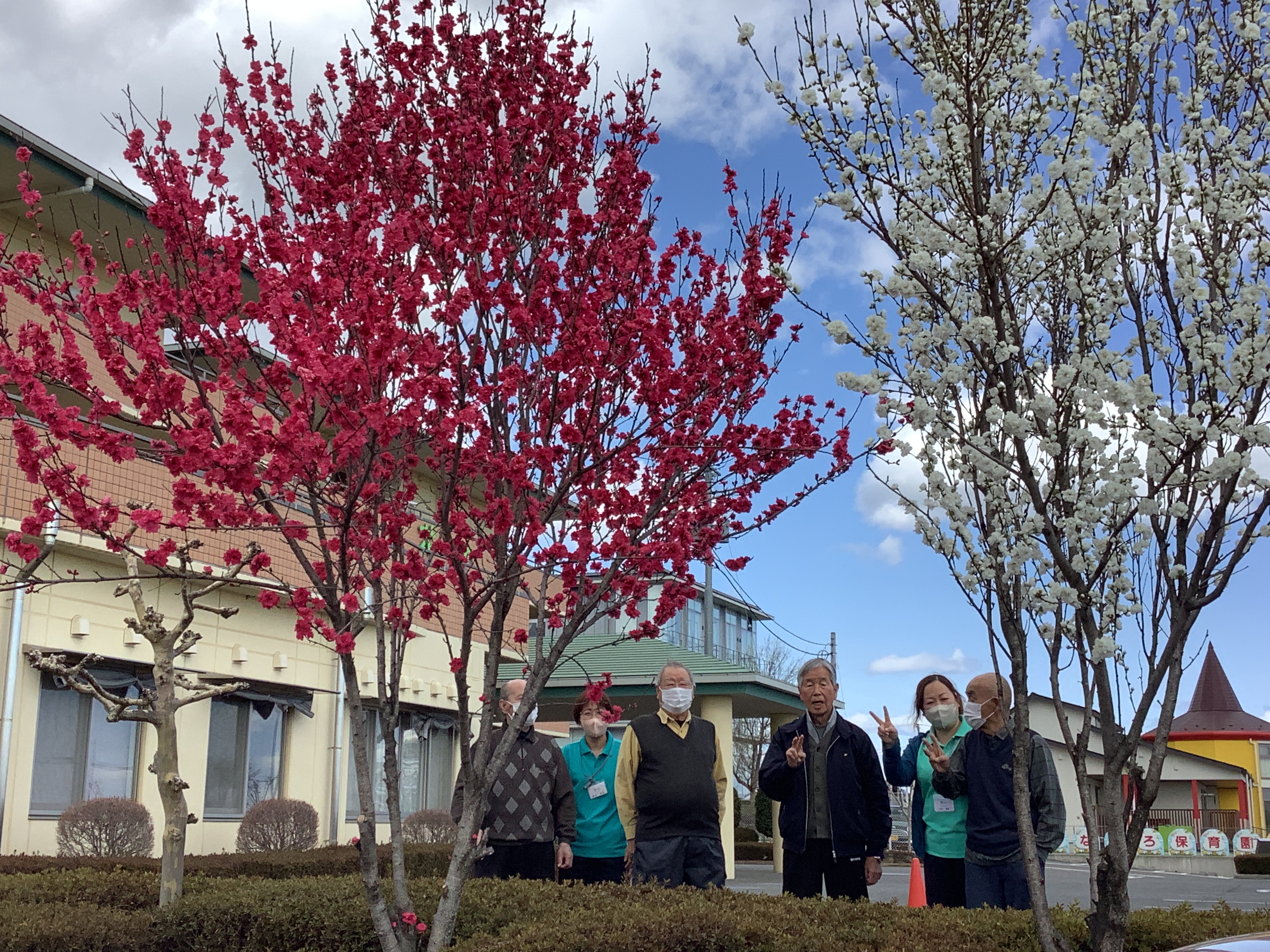 雨も上がり、暖かい日でしたので施設敷地内をお散歩しました(^^♪ 「気持ちがいい」「いい空気だ」と皆様嬉しそうでした(^^)/ 来週には桜が満開になるといいですね♪